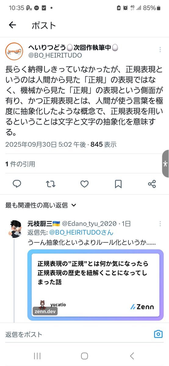 返信先:@BO_HEIRITUDO正規表現は現実に存在するので抽象ではなく、それとリンクするように話したのになにも具体的な反論がなく、論ではなく人に対する中傷しかかえってこないのはどうなんでしょう? #社会の敵 #高校生以上の敵 #プログラマーの敵 pic.x.com/y3GqBxqdvK
