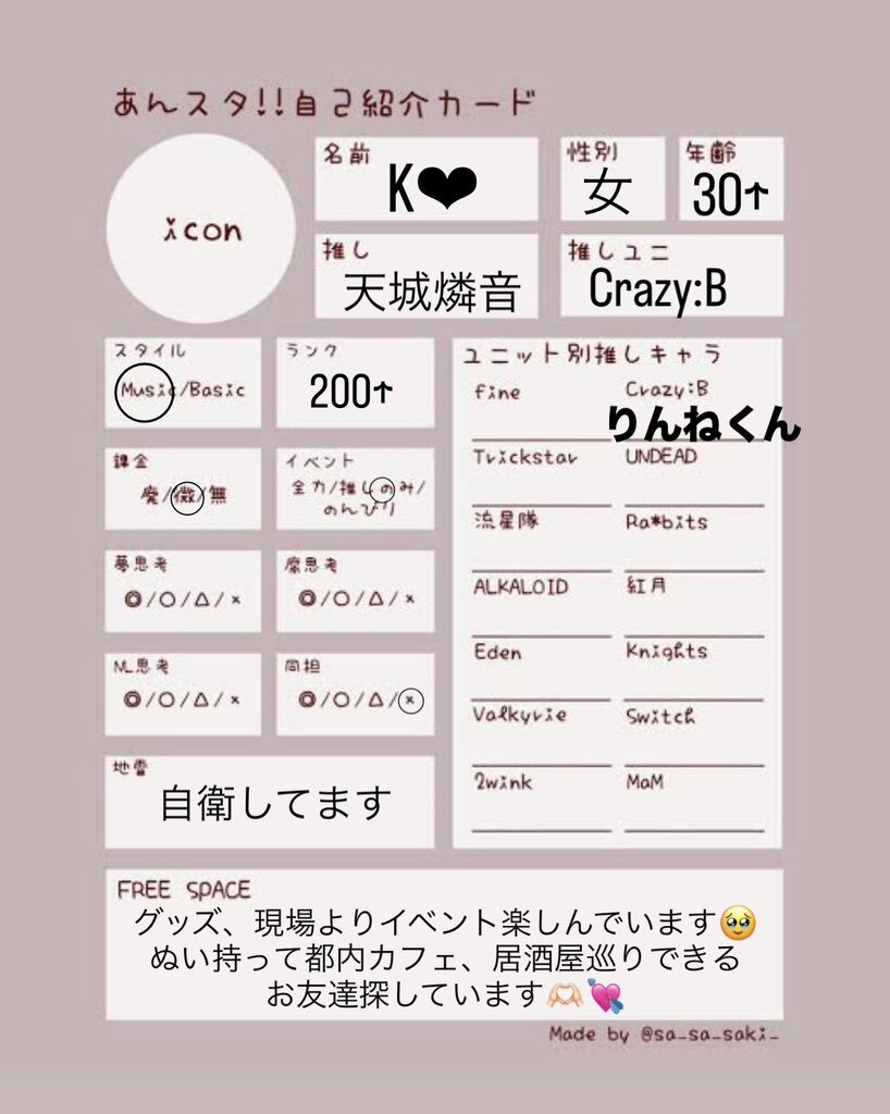 引用元からお願いいたします🙇♂️ あんライやったりカフェとか行ったりしたいです! 年齢近い方繋がりたいです #あんスタ自己紹介カード #あんスタ好きな人と繋がりたい #社会人あんスタPと繋がりたい #成人済みあんスタPと繋がりたい x.com/mh37716/status…
