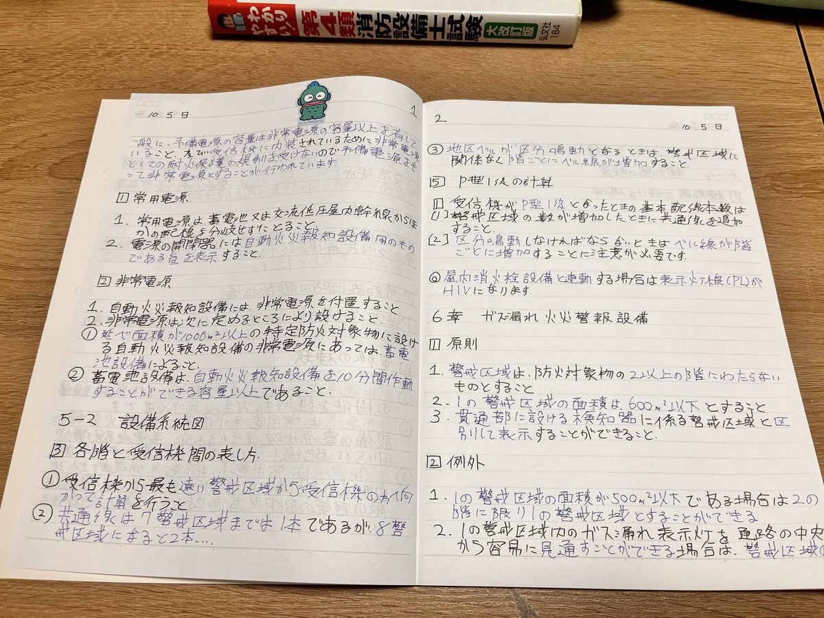 2日分の勉強勉強です! 10.5(日)と10.6(月)に、消防設備士甲種4類を合わせて1時間43分勉強しました! 全然勉強出来てません😖 毎日やれてるのは、自分を褒めたいです(?) #勉強垢さんと繋がりたい #勉強垢さんと一緒に頑張りたい #社会人の勉強垢 #社会人勉強垢と繋がりたい #資格勉強 pic.x.com/QyRoWCyfg9