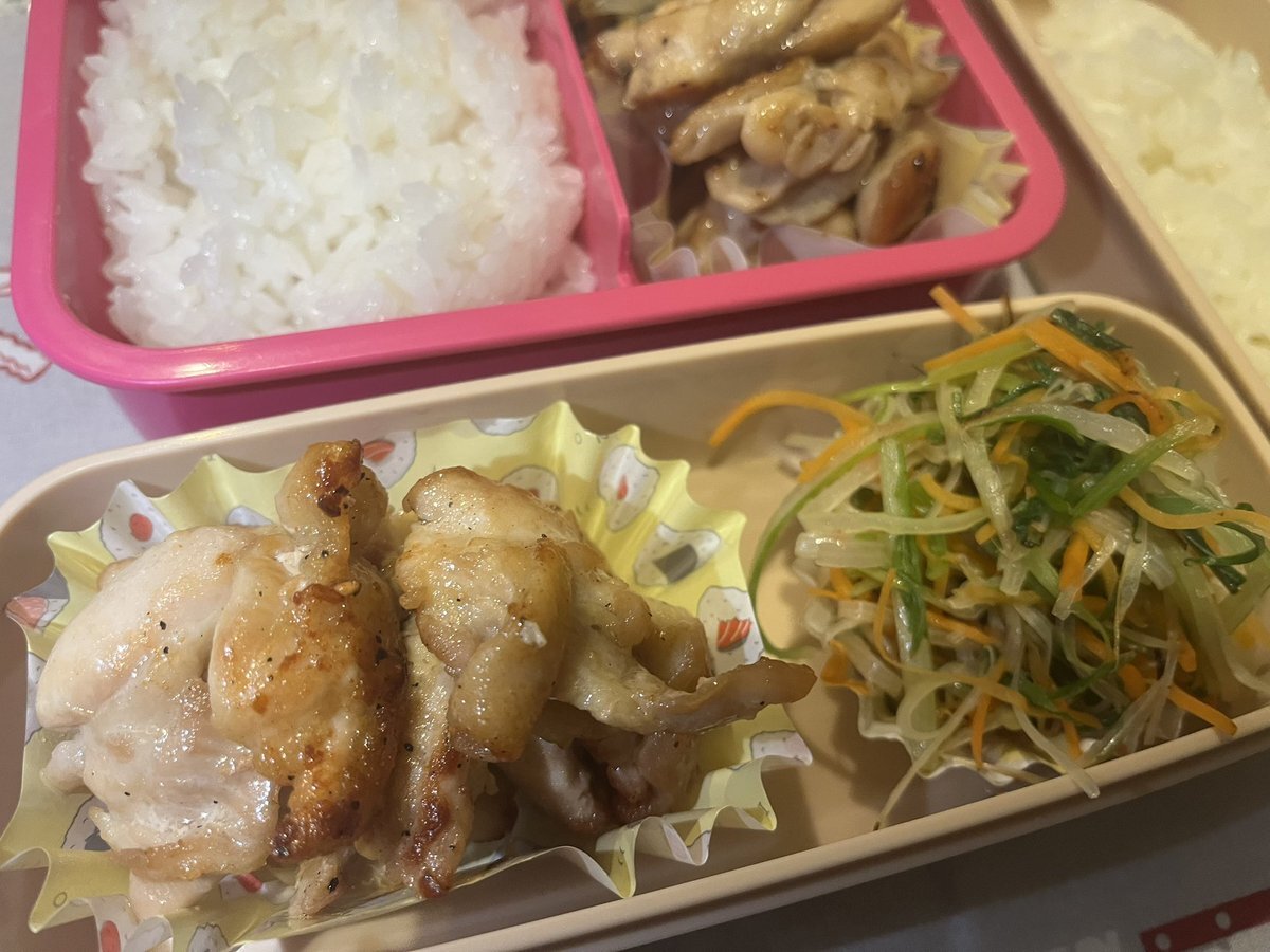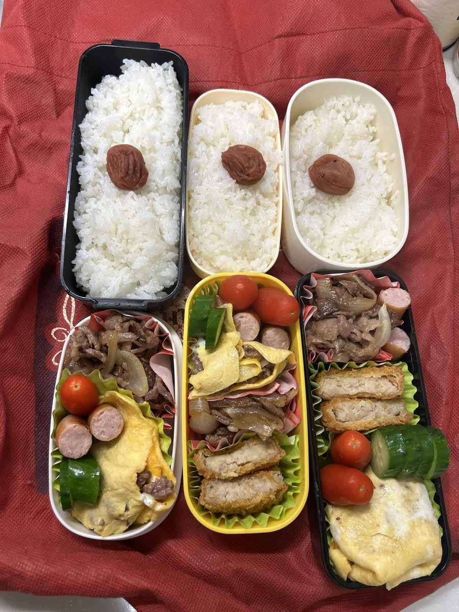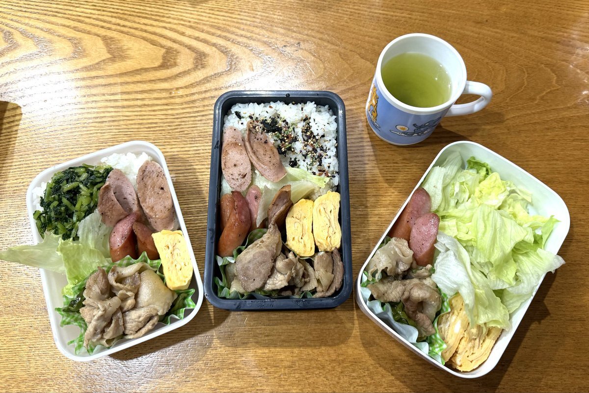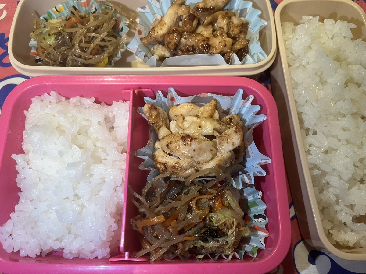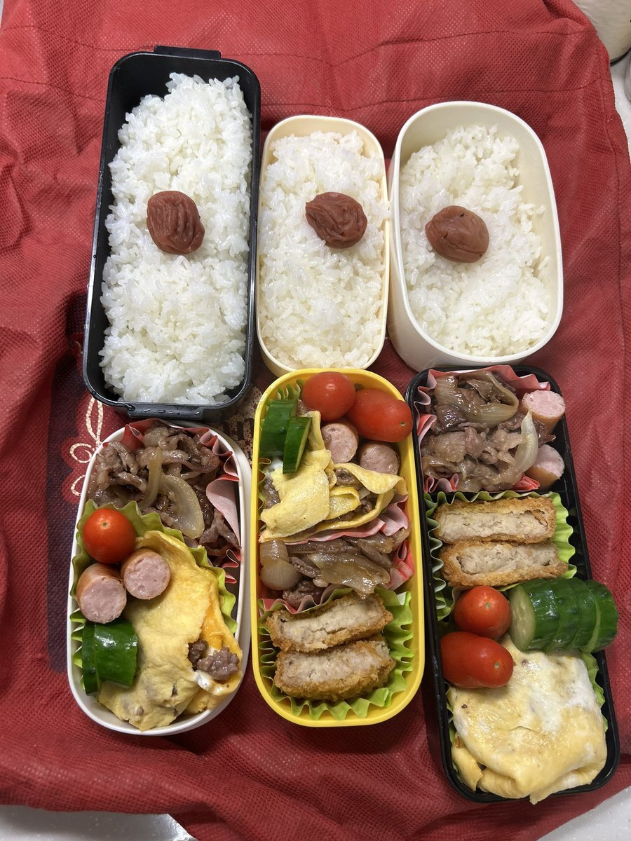 お〜はようございまっす🤩 今日は3人分やけど1つは旅立ちました。 今日も別嬪さんで😘 🌿市販様鶏つみれ生 お揚げに詰めて出汁醤油で煮た 🌿豚ロース 圧力鍋で蒸した薩摩芋巻き 甘辛たれ絡め焼き 🌿豚 もやし うちのピーマン 中華炒め 🌿写ってないがしじみ汁 #高校生弁当 #社会人弁当 #お弁当記録 pic.x.com/uddUOSveVb