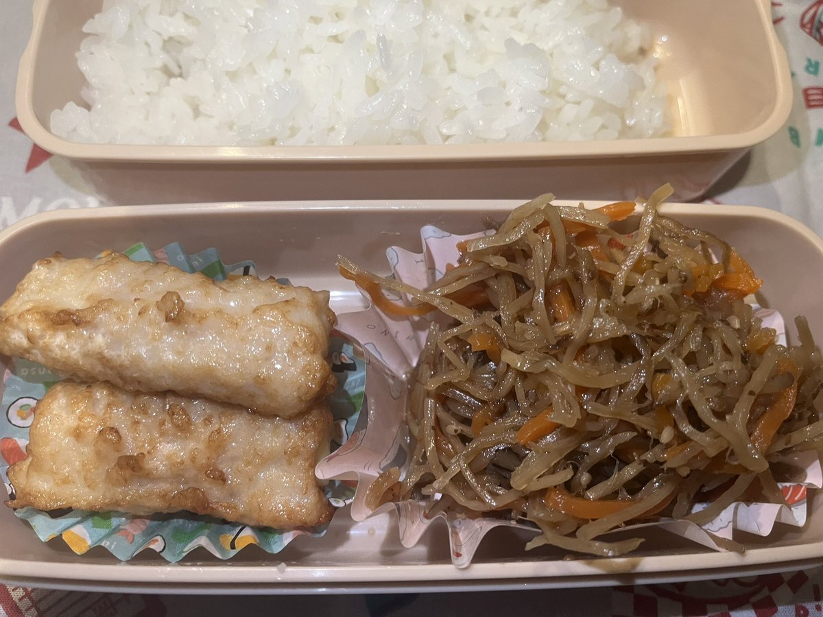 お〜はようございまっす🤩 珍しく2人分のみ🎶 今日も晴れてんな😊☀️ 口角上げて別嬪さんでいこっ☝️❤ 🌿チーズ入り竹輪 焼肉タレ焼き 🌿ひじき煮物 🌿人参 うちのピーマンきんぴら 🌿オカヒジキ 和え物 #高校生弁当 #社会人弁当 #お弁当記録 pic.x.com/nIrT7O39XU