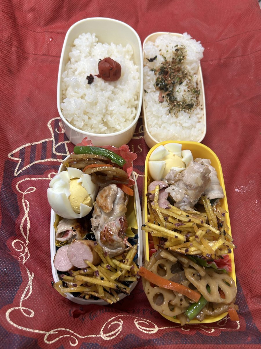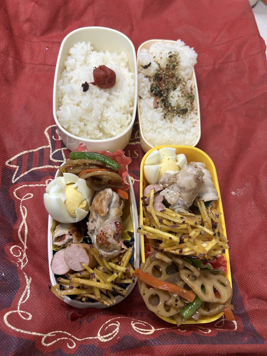 #お弁当作り楽しもう部 #お弁当記録 #大学生弁当 #社会人弁当 #自分弁当 #802いただきます 木曜日✨ 秋🍂晴れ 晴れて😌 #関西学生陸上種目別選手権 #ヤンマースタジアム長居 👨🦱2次予選 繋がったみたい🙌 今日もヨロシクデス🍱 豚青シソ梅肉巻き 蓮根キンピラ 🍠芋ケンピ ゆで卵🥚 ウィンナー🥗 pic.x.com/iBxTRjwgnC