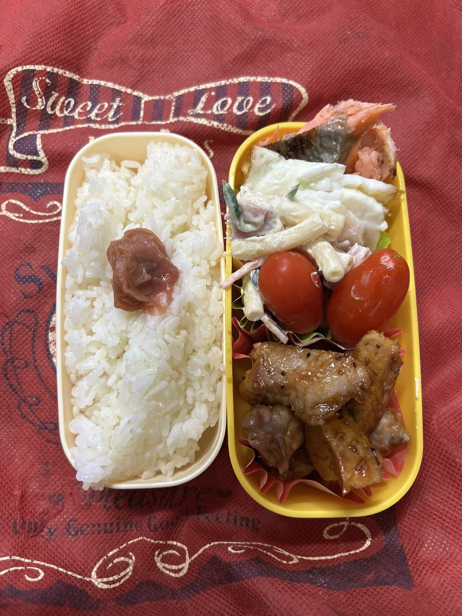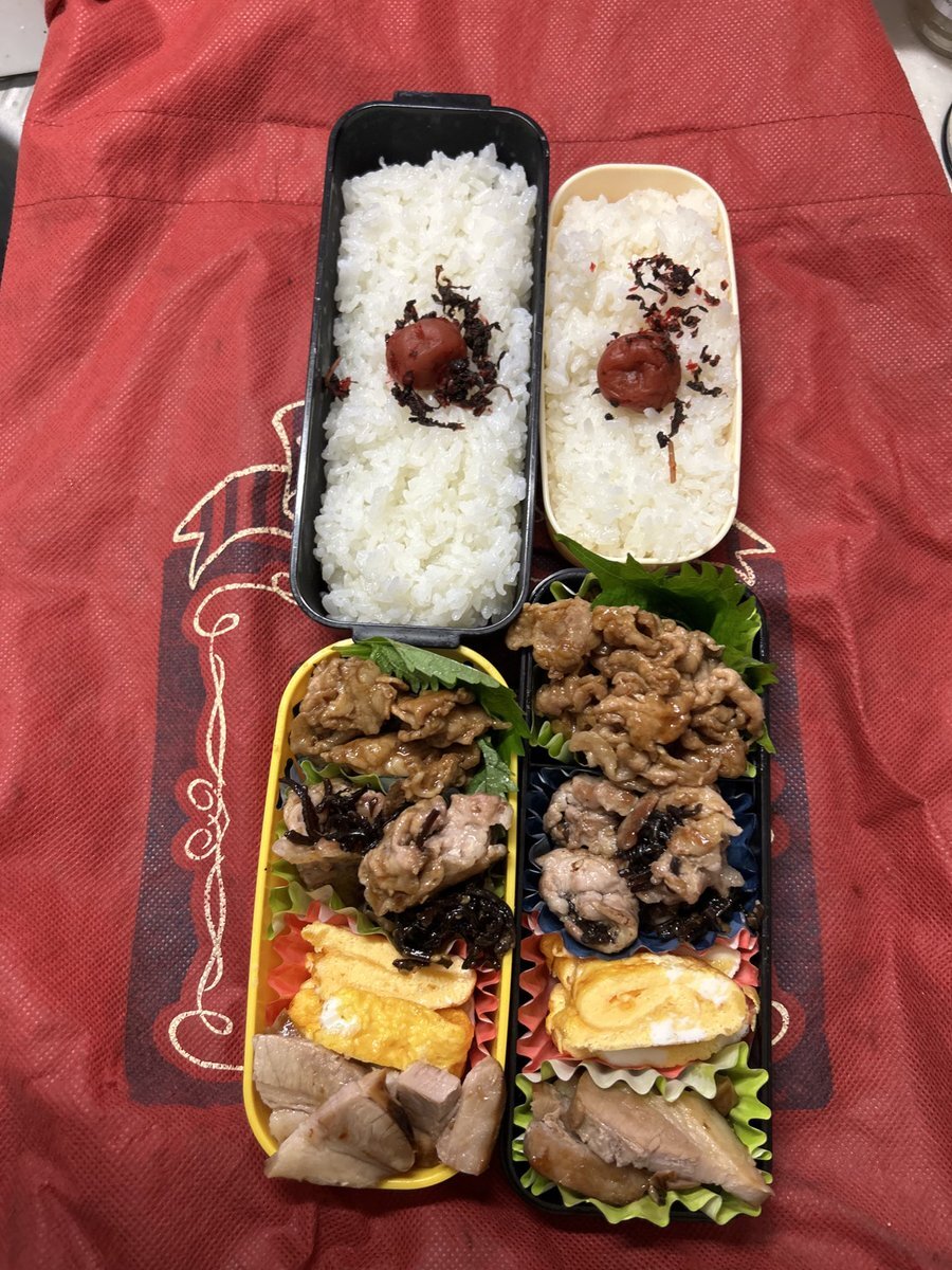 #お弁当作り楽しもう部 #お弁当記録 #大学生弁当 #社会人弁当 #自分弁当 #802いただきます 水曜日✨ スイスイ🚲 昨夜は満月🌕 今日は模様が‥ 🌧️が心配🥹 我が家のレンジが 故障してから もう1カ月😳 早く買わなきゃ🤭 今日もヨロシクデス🍱 豚焼肉風 豚昆布巻き だし巻き卵焼🍳 焼豚🥗 pic.x.com/mWN6Aj8QB1