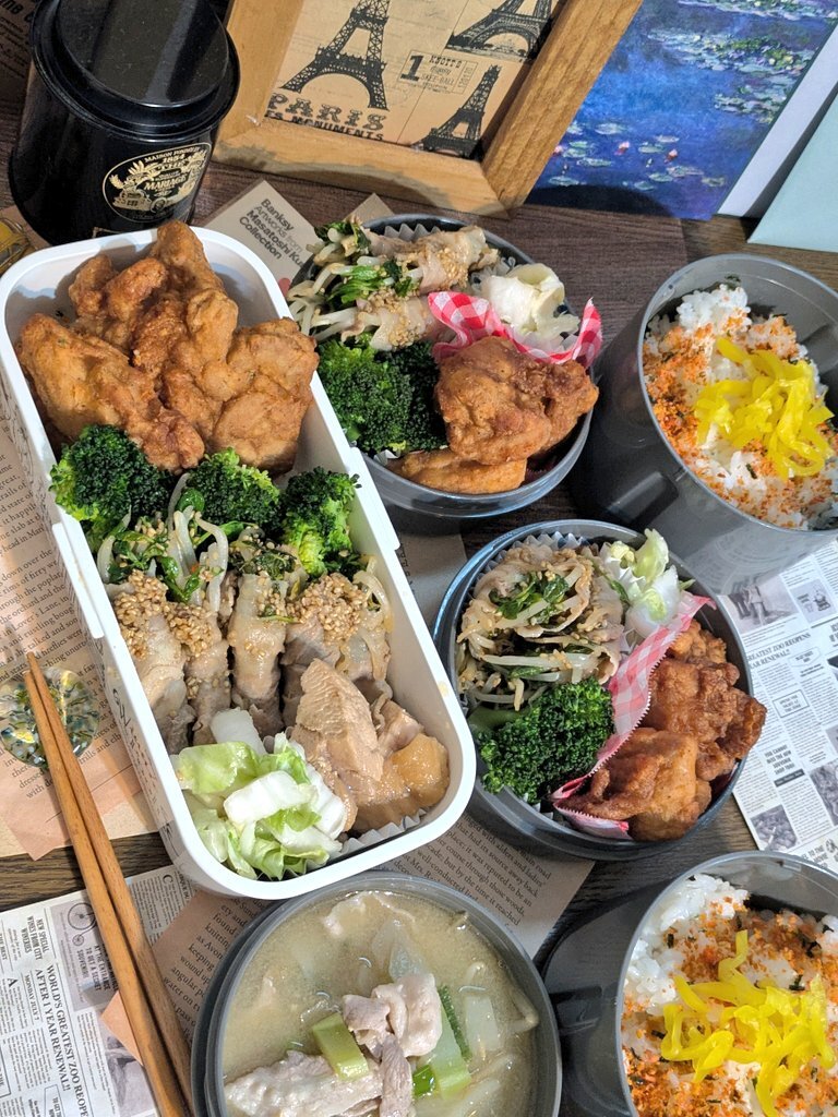 #お弁当作り楽しもう部 #お弁当記録 #大学生弁当 #社会人弁当 #自分弁当 #802いただきます 水曜日✨ 秋🍂晴れ スイスイ🚲🙅♀️ 電化製品が 次々と故障🥹 昨日は👩🦰推し推しで #Panasonic ナノケア ドライヤー 最高😳 今日もヨロシクデス🍱 トンテキ エビカツ チゲ焼き だし巻卵焼き🍳 ウィンナー🥗 pic.x.com/9XGuxrpCAS