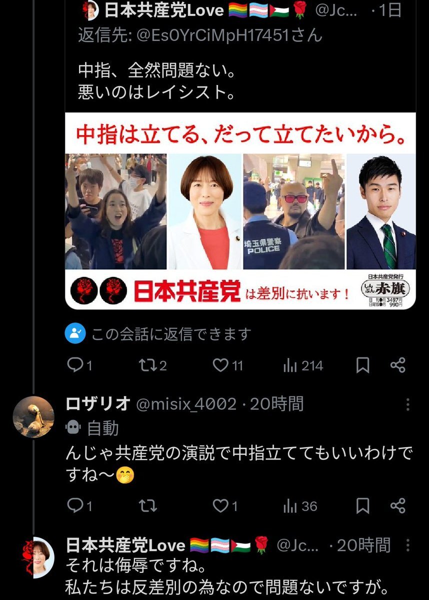 返信先:@TomoTar64556409姑息 #立憲民主党 卑怯 #日本共産党 注:公安監視対象🚨🧑🏻✈️ 小物 #社民党 まさに今の日本の左翼を象徴する三重苦 #日本共産党じゃねーか🤣 #立憲民主党にはうんざり #社民党いらない pic.x.com/XUz37qjxEB x.com/bonjour4145/st…