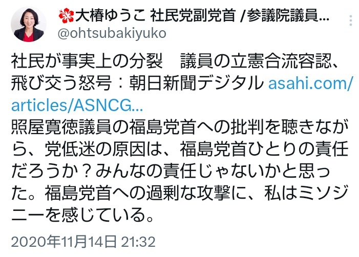 この時、照屋氏は胃癌に侵されてて余命いくばくもありませんでした。 その照屋氏のこの発言を、あろうことか女性差別主義者の発言だとして中傷したのが 草津冤罪事件で町長から名指しで批判されている大椿ゆうこです。 現在、照屋氏と同じようにみずほにくら替えを求めています。 #社民党いらない pic.x.com/DUR506lGli x.com/sxzBST/status/…