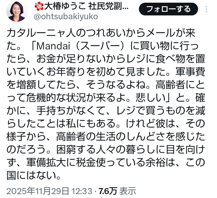 返信先:@ohtsubakiyuko軍事費(防衛費)のせいにするあたりが論理の飛躍・ポンコツ社民党らしさ全開。高齢者の生活苦を無くすためにも、社民党のような反日命の政党・売国奴議員に払われる超無駄な税金の使われ方を無くさないとね! #社民党いらない