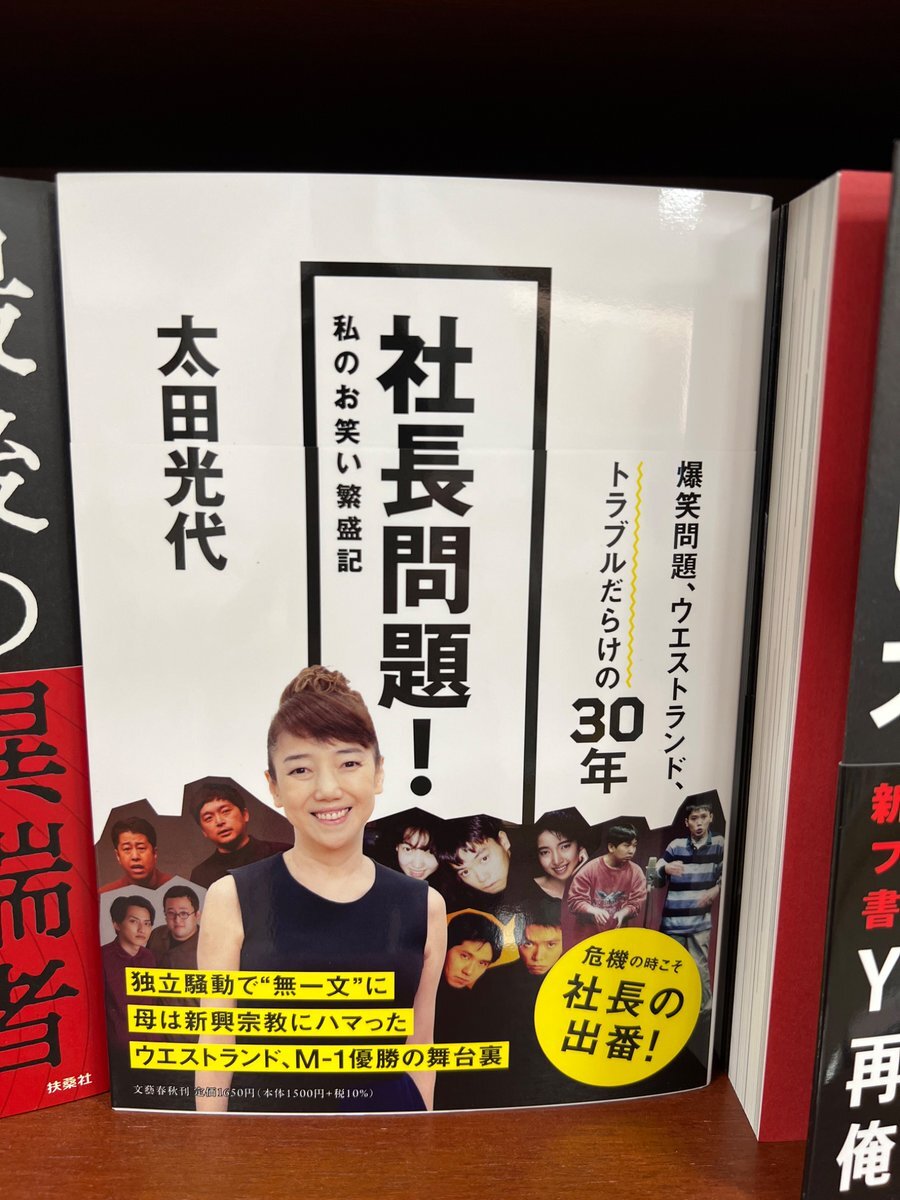 📺本日入荷🥃 『#社長問題! #私のお笑い繁盛記』 「文藝春秋」で連載されていた「お笑い社長繁盛記」がついに書籍化! 芸能マネジメントにとどまらず、先駆的だった「シネマライブ」への取り組みなど、“経営者”太田光代としての側面にも光をあてた一冊。 #太田光代 pic.x.com/uwxdJ6QlUD