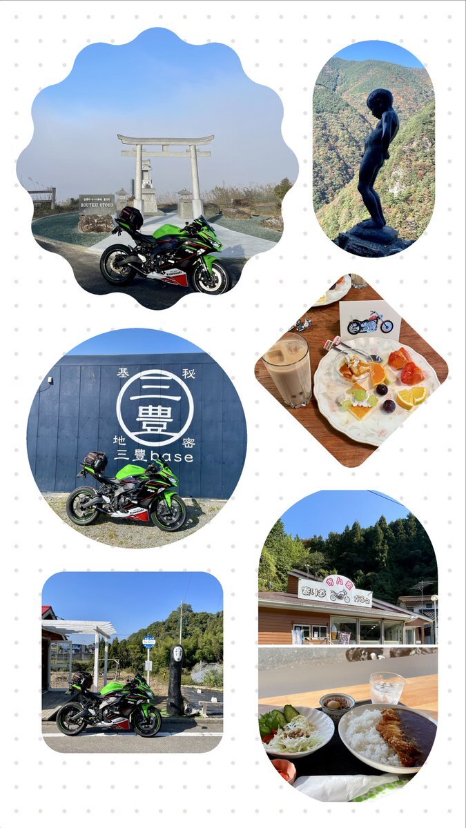 四国ぐるりとプチツーリング🛵 朝は少し寒いですが絶好の ツーリング日和でした🍁 こんな日が長く続いたら 良いですね✨🍁🍂✨ ヽ(*^ω^*)ノ☆彡🦋 #オートバイ神社 #祖谷渓の小便小僧 #サカノウエの駄菓子屋 #三豊ベース #寄り道かふぇずん家 pic.x.com/0OYFqfLrPC