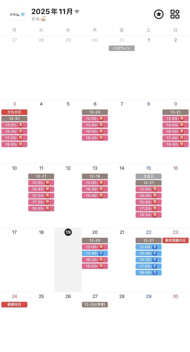 来週のシフトです🤍珍しく深夜帯も出勤します🎶来週は師走並の寒さになるって聞いたので🥲暖かい部屋とホットオイルとひよりの体温でぬくぬくしてください⛄️❄️事前のご予約いただけたら嬉しいです♡ 11/17(月)12-20 11/20(木)20-5 11/21(金)11-19 11/23(日)12-20 #メンエス #神のエステ #大宮メンエス pic.x.com/d27biNC21j