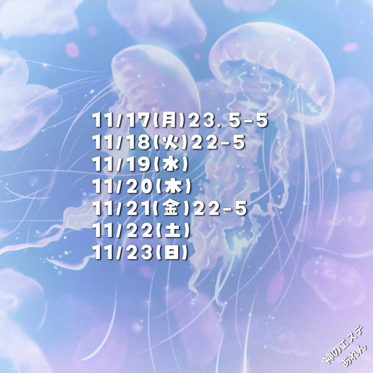 ⭐️出勤予定 11/17 (月) 20-5 新大久保 11/21 (金) 21-5 高田馬場 11/22 (土) 20-5 新宿 11/23 (日) 22-5 高田馬場 #神のエステ #メンズエステ pic.x.com/3Zc9KNZDLJ