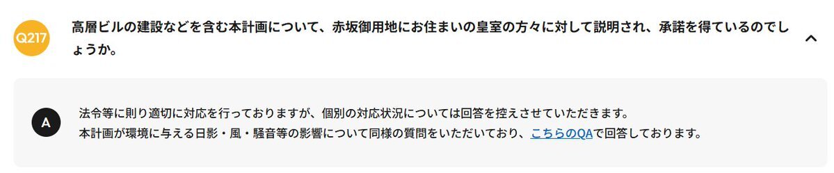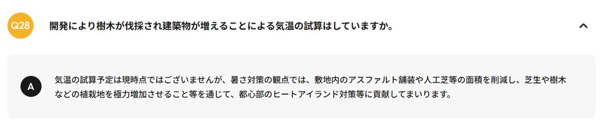 A:法令等に則り適切に対応を行っておりますが、個別の対応状況については回答を控えさせていただきます。 本計画が環境に与える日影・風・騒音等の影響について同様の質問をいただいており、こちらのQA jingugaienmachidukuri.jp/faq/#q160 で回答しております。 #神宮外苑地区まちづくり #JinguGaien pic.x.com/LyksFBhZmK