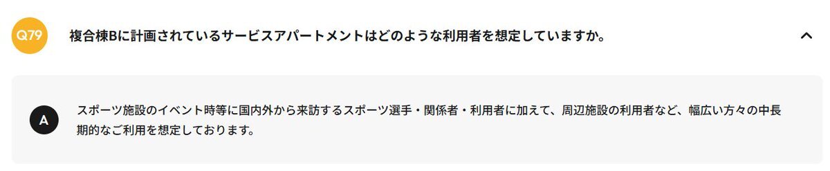 Q:複合棟Bに計画されているサービスアパートメントはどのような利用者を想定していますか。 A:スポーツ施設のイベント時等に国内外から来訪するスポーツ選手・関係者・利用者に加えて、周辺施設の利用者など、幅広い方々の中長期的なご利用を想定しております。 #神宮外苑地区まちづくり pic.x.com/llTbZCGkU5