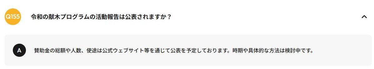 Q:令和の献木プログラムの活動報告は公表されますか? A:賛助金の総額や人数、使途は公式ウェブサイト等を通じて公表を予定しております。時期や具体的な方法は検討中です。 #神宮外苑地区まちづくり #JinguGaien #みどりについて #令和の献木 jingugaienmachidukuri.jp/faq/#anchor10 pic.x.com/rMlik3eWyP
