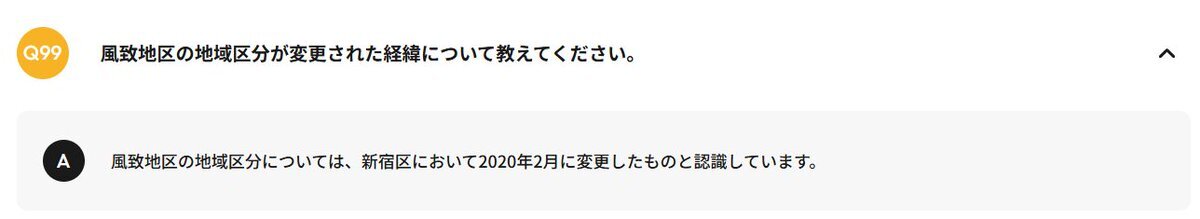 Q:風致地区の地域区分が変更された経緯について教えてください。 A:風致地区の地域区分については、新宿区において2020年2月に変更したものと認識しています。 #神宮外苑地区まちづくり #JinguGaien #計画の枠組み jingugaienmachidukuri.jp/faq/#anchor09 pic.x.com/07y7RZm3SK