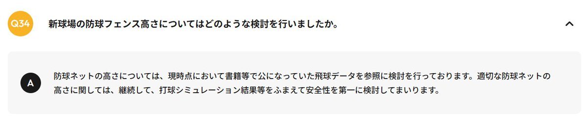 A:防球ネットの高さについては、現時点において書籍等で公になっていた飛球データを参照に検討を行っております。適切な防球ネットの高さに関しては、継続して、打球シミュレーション結果等をふまえて安全性を第一に検討してまいります。 #神宮外苑地区まちづくり #JinguGaien #神宮球場 pic.x.com/n4PO3hDydk