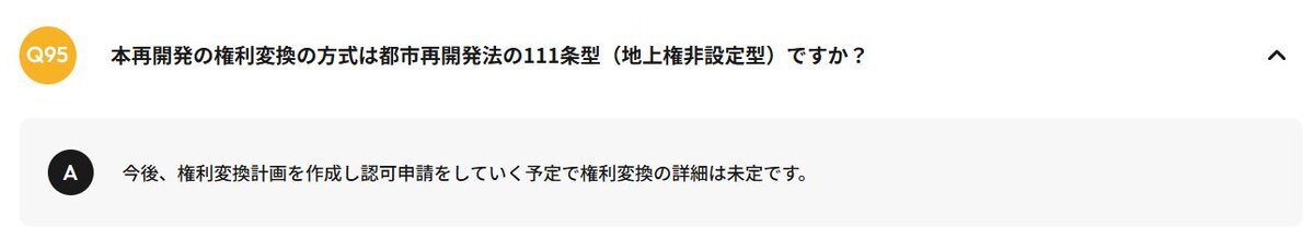 Q:本再開発の権利変換の方式は都市再開発法の111条型(地上権非設定型)ですか? A:今後、権利変換計画を作成し認可申請をしていく予定で権利変換の詳細は未定です。 #神宮外苑地区まちづくり #JinguGaien #計画の枠組み jingugaienmachidukuri.jp/faq/#anchor09 pic.x.com/UDEAMCxp4m