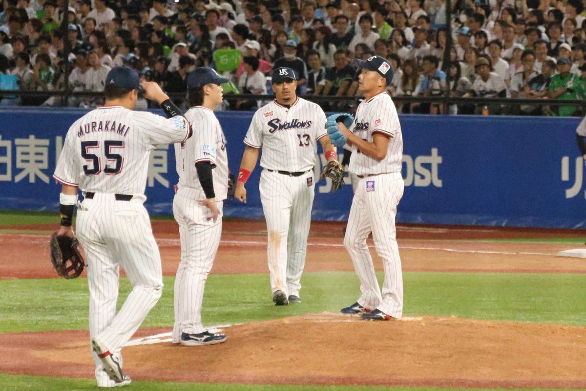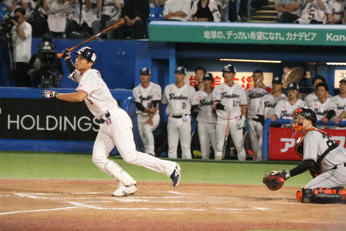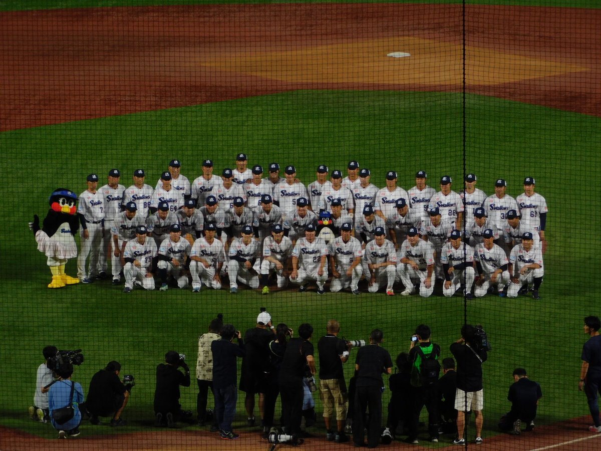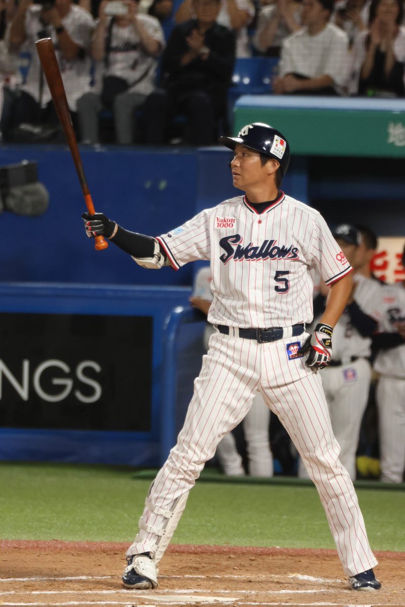 お別れの時。 20年間お疲れ様でした。 個人的な思い出は2012.8.25 復刻ユニフォームを着用してのナゴヤドームでの試合。 館山昌平投手最後の完封勝利。最初で最後の1-0完封試合でのレフト犠牲フライ。 #川端慎吾 #神宮最終戦 pic.x.com/IhhhaQH8lM