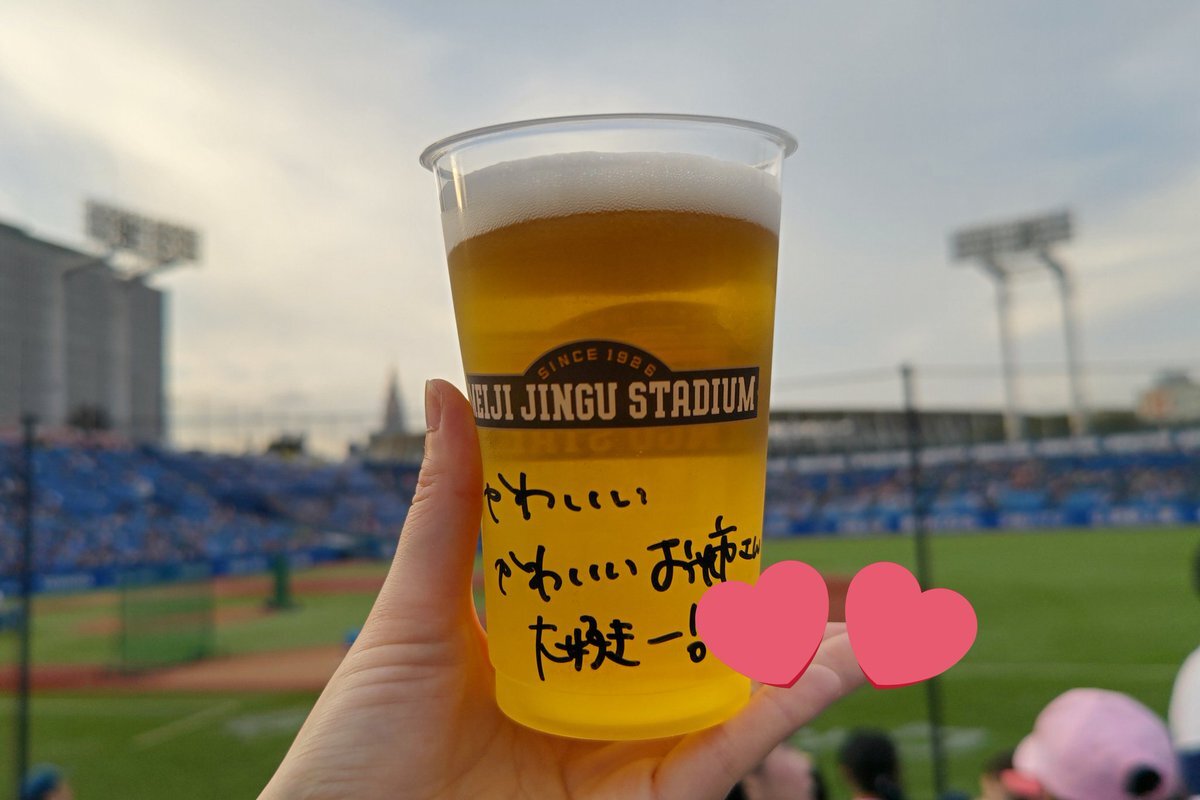 推しの売り子ちゃんが書いてくれた😭💕 卒業かなしい😭 今まで本当にありがとうございます😭💕 ※私にはしてくれなかった民がわいてくるとアレなのでお名前のところは隠しました🤫ナイショダヨ #swallows #神宮球場 #神宮最終戦 pic.x.com/2p2IFy77e7