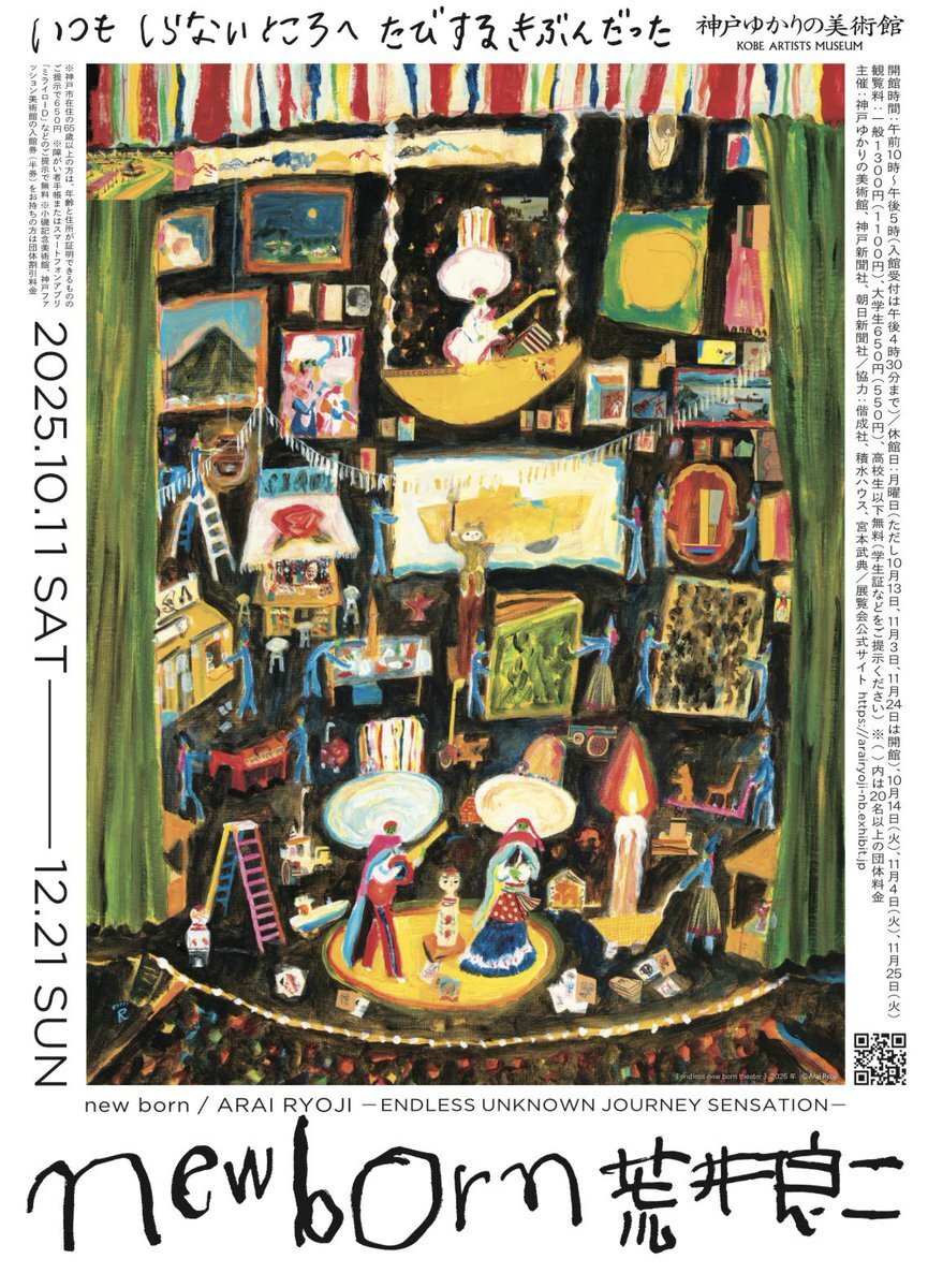 #神戸ゆかりの美術館 @kobeyukarin で開催中の展覧会「new born 荒井良二 いつも しらないところへ たびするきぶんだった」🛳️ この3連休(11/1〜11/3)は休みなく開館しています✨皆さまのご来場をお待ちしています🌟 会期は12/21(日)まで🗓️ 詳細は👉 arairyoji-nb.exhibit.jp pic.x.com/O9LnpxwzpO