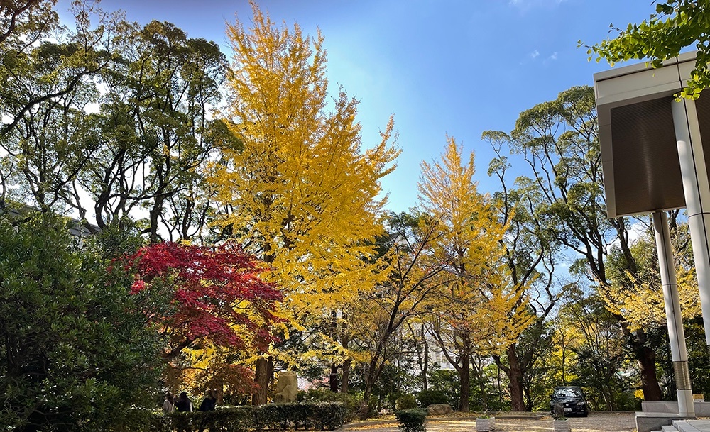 【秋深まる】 六甲台第1キャンパスの武道場「艱貞堂」 左側のカエデの色付きは今年いまひとつだが、東側の黄葉が深まる秋を感じさせる(2025年11月21日 11時56分) #神戸大学 #神戸大 #神大 pic.x.com/wKfgkJxQ2V