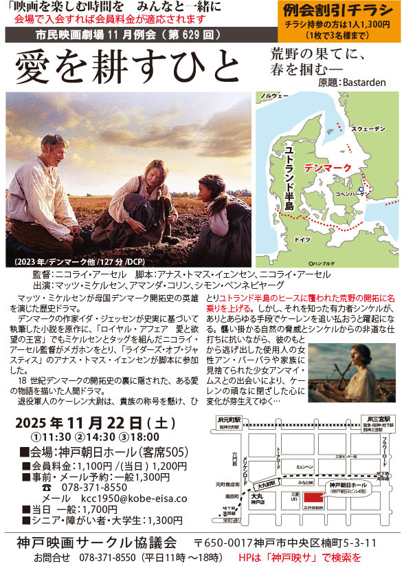 お早うございます 晴れ 今朝は老眼大学の前で11月例会『#愛を耕すひと』(#マッツ・ミケルセン 主演)の宣伝 #神戸映サ その後帰宅し、17時からほんまの会の運営委員会、その後、地域のふれあい祭りの反省会 行ったり来たりの一日です