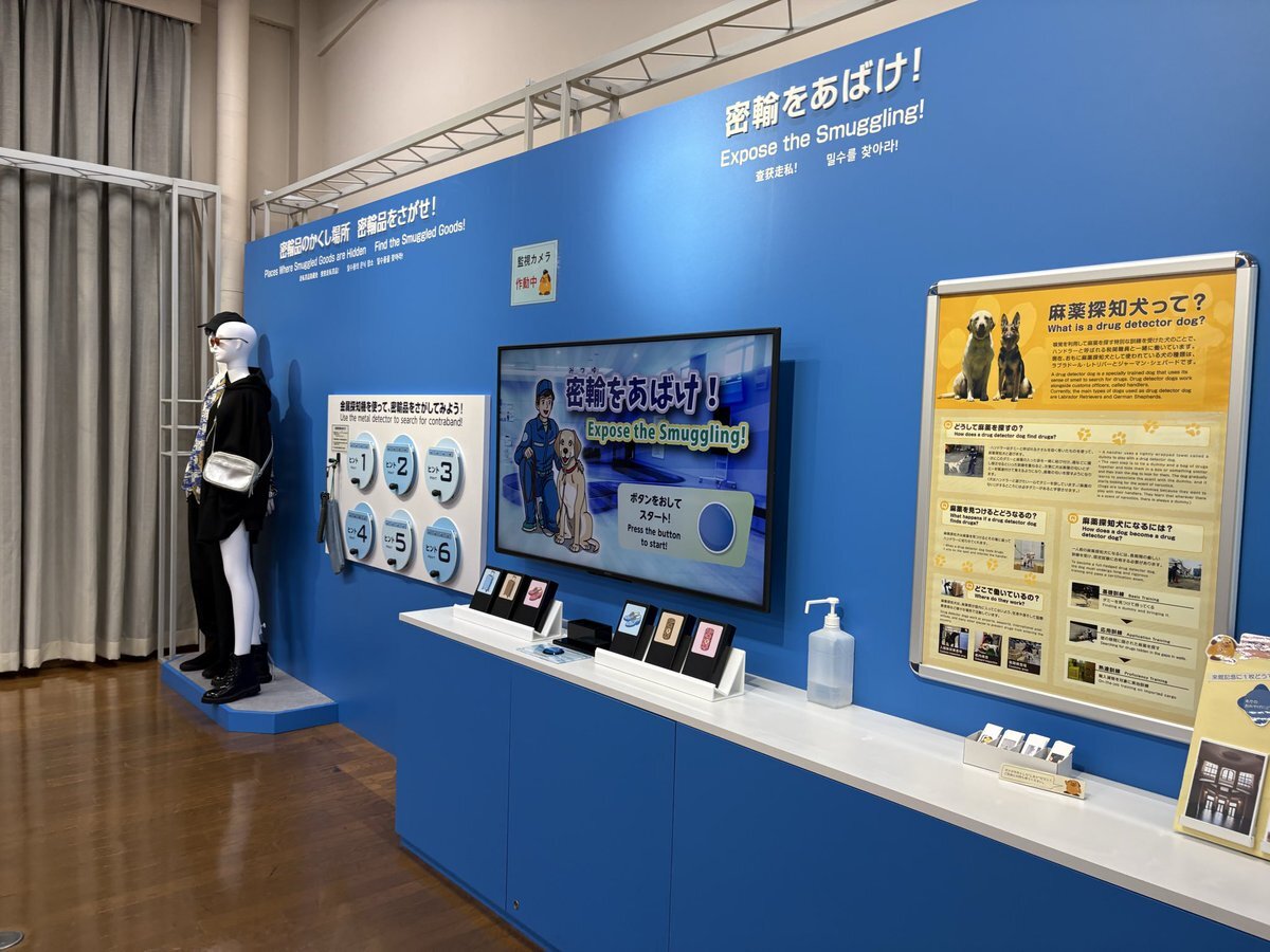 神戸の税関で麻薬取締犬のゲームが出来るのでぜひやってみて頂きたい😁 実際の麻薬取締犬ってゴールデンレトリバーなのかな?🤔 異様なまでに可愛いワンちゃんに驚きを隠せませんでしたよ😂 こんな感じの体験型の展示もあって楽しい神戸税関みなさまもいかがでしょうか?😁 #ゴーダンナー #神戸税関 pic.x.com/Eshh6L12Xf