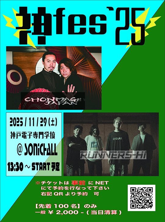 【チケット発売中】 神戸電子専門学校学園祭「神fes'25」 11.29(土)開場13:00 @神戸電子専門学校北野館ソニックホール CHONMAGE JAPAN初の学園祭に呼んでいただきました! 一般観覧も可能! チケット&詳細はこちら kobedenshifestival2025band.peatix.com #CHONMAGEJAPAN #神戸電子専門学校