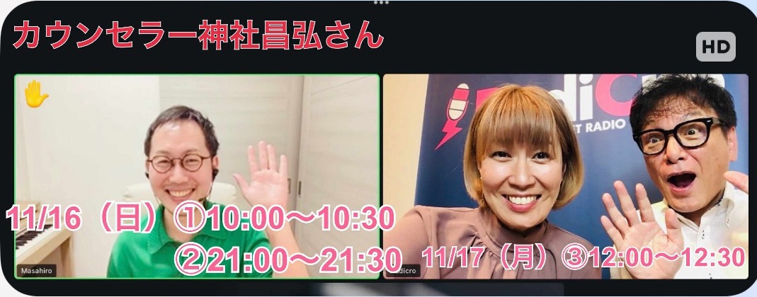 【まもなくオンエア📻】 本日11/16(日) 10:00〜 心がふっと軽くなるラジオ出演です。 RadiCro ▶ PLAYボタンで聴けます radicro.com ■放送 ①10:00〜(直前) ②21:00〜 ③明日12:00〜 難病からの再生、父への想い、人生の節目の話。 必要な方に届きますように。 #ラジオ出演 #神社昌弘 pic.x.com/r8FyUcDABI