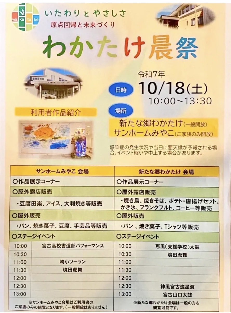 【流星海イベント情報】 『わかたけ 晨祭』 ★日程 10月18日(土) ★場所 新たな郷わかたけ ★演舞時間 12:30~13:00 肌寒くなってきましたが、私たちの演舞で会場を温めます‼️ 会場までぜひお越しください☆彡 #よさこい #神風宮古流星海 pic.x.com/t9adBZwYDU