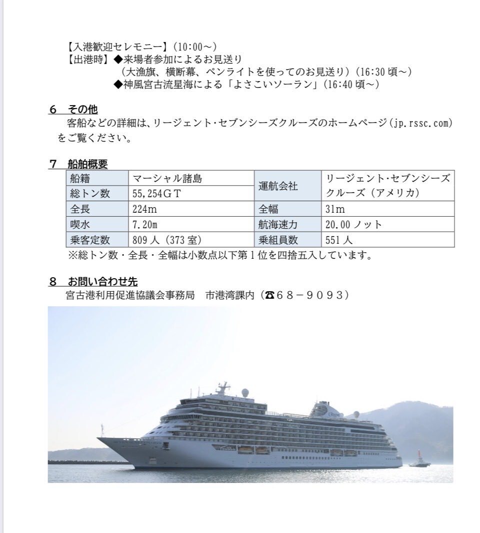 【流星海イベント情報】 『セブンシーズ・エクスプローラー 出港セレモニー』 ★日程 10月19日(日) ★場所 藤原埠頭 ★演舞時間 16:40~17:00 史上最高級の客船 セブンシーズ・エクスプローラーが宮古から出港します‼️ 私たちと一緒に元気にお見送りしましょう☆彡 #よさこい #神風宮古流星海 pic.x.com/WH5kI5mHe9