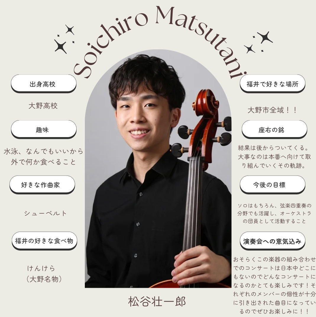 【ただいま福井プロジェクト】 メンバー紹介📓 チェロ:松谷壮一郎(まつたにそういちろう) #松谷壮一郎 #ただいま福井プロジェクト #福井 #坂井市 #ハートピア春江 #演奏会情報 #コンサート情報 pic.x.com/wO7bzB1SwN