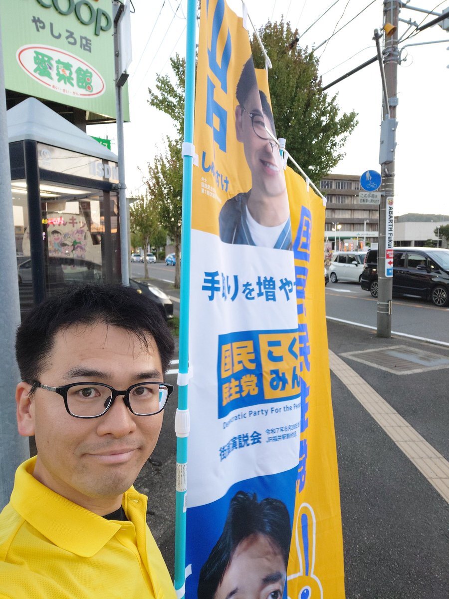 みなさん おはようございます😊 今日も保守活よろしくお願いします🙏 朝の旗見せ始めました✨ 10月10日晴天😆 いいスタートの日になりました🙌 今日もカルビ大将前で17:00から旗見せします😊 日本保守党を応援してくださる方、旗を見かけたらクラクションお願いします🙏 日本を豊かに、強く。