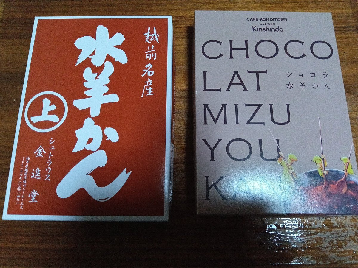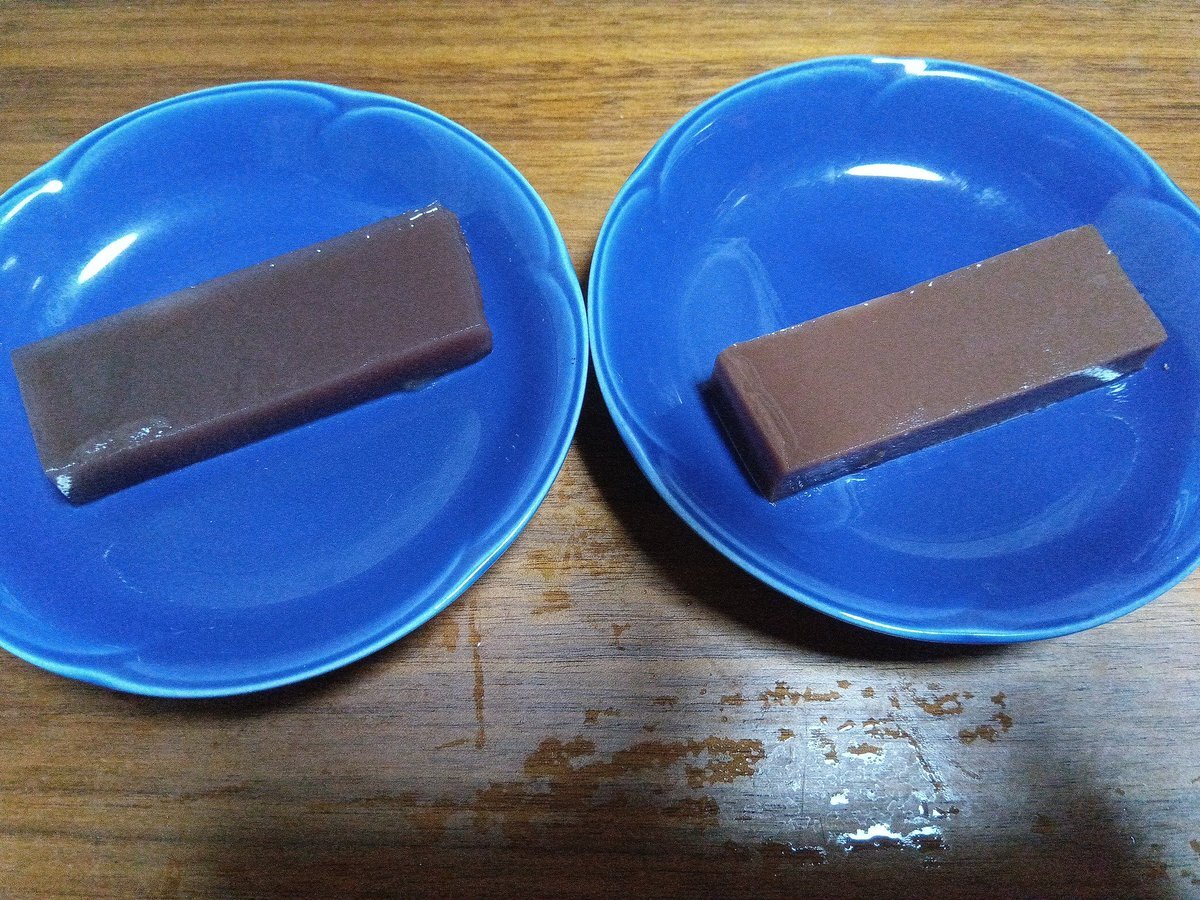 今日は福井県・シュトラウス金進堂の水羊かんを食べ比べ💧 左)水羊かんは柔らかめでさっぱり甘さ控えめで老若男女問わず好まれそうな味☺️ 右)ショコラ水羊かんはカカオの香り豊かで普段和菓子を食べない人にもオススメ🍫水羊かん特有の舌触りも楽しいです☺️ #福井の冬水ようかんフェア pic.x.com/GJf7MhUaBj