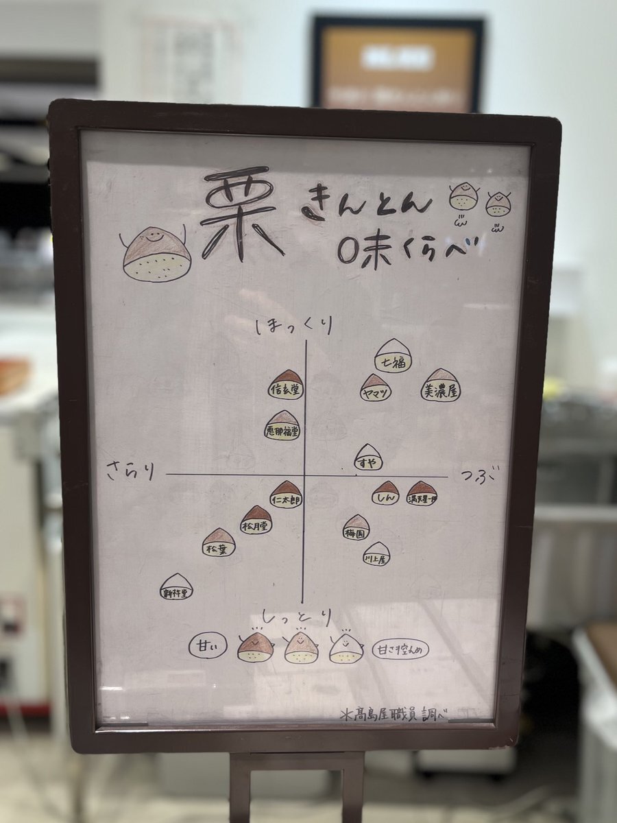 いよいよ明日11/12より #新宿高島屋 で開催します、秋と冬の味覚ダブル開催‼️ #中津川栗きんとん祭り #福井の冬水ようかんフェア 今年もマトリックス掲示してます。参考になるか分かりませんが、僕と #高島屋 pic.x.com/KWYOiZymdM