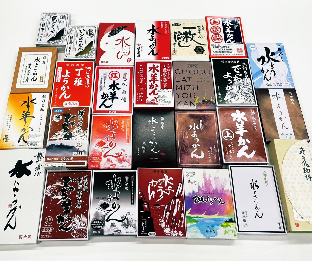 実は福井でも、一度にこれだけたくさんの種類の水ようかんを目にすることはないのです だから、東京の方はぜひどうぞ〜 #福井の冬水ようかんフェア x.com/wagashibuyer/s…