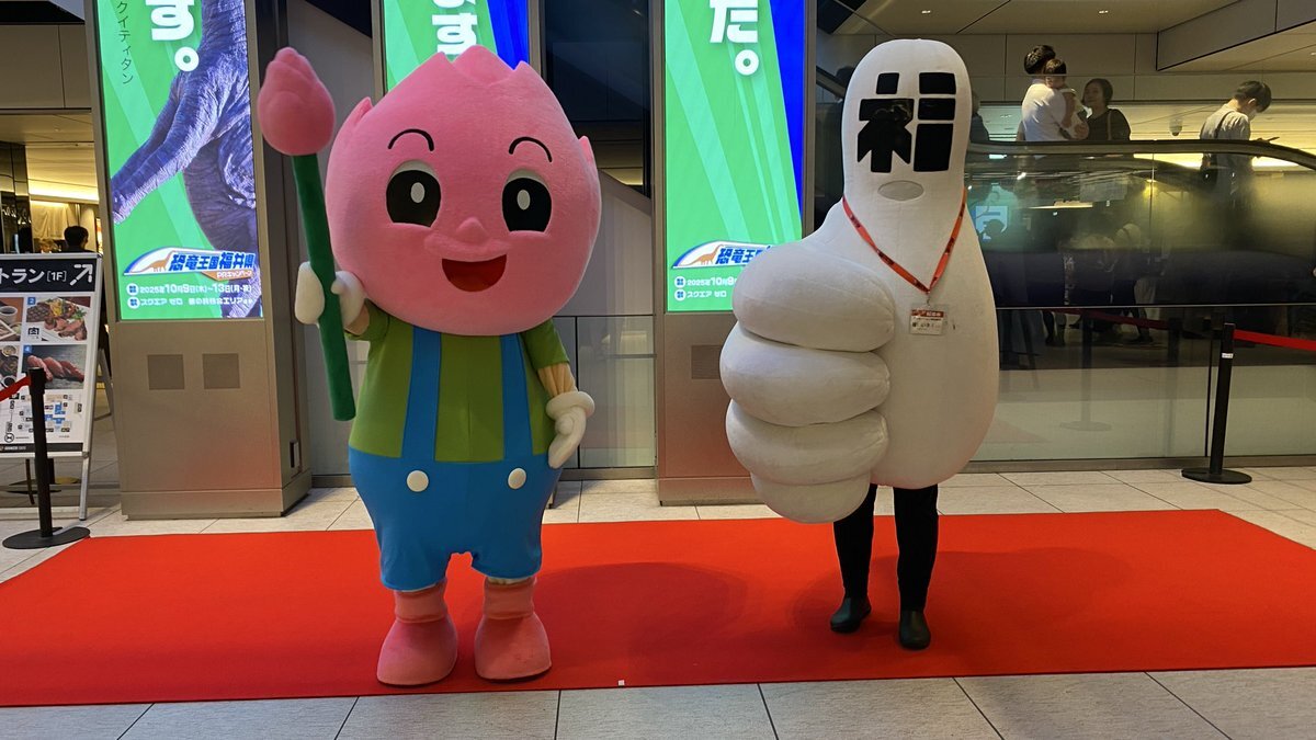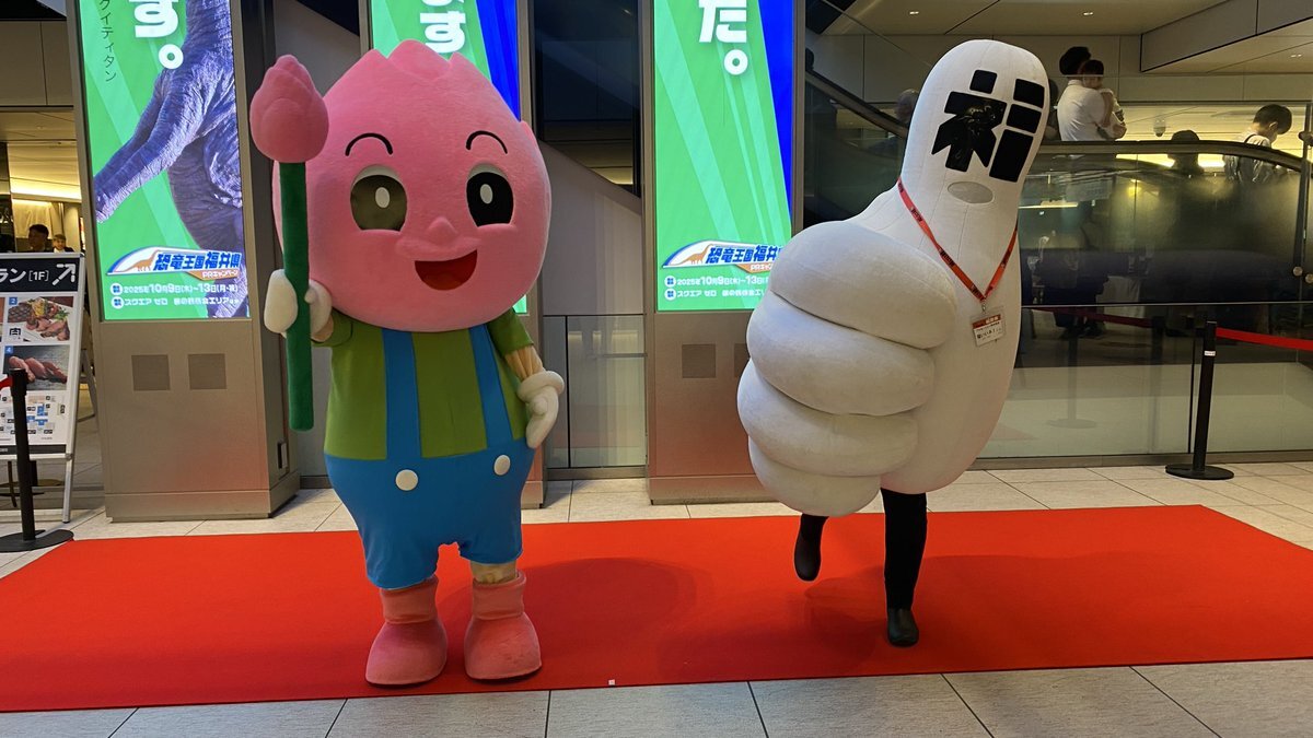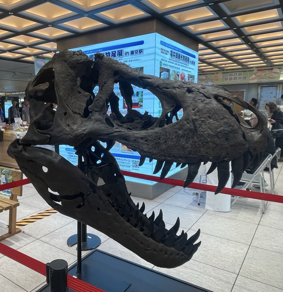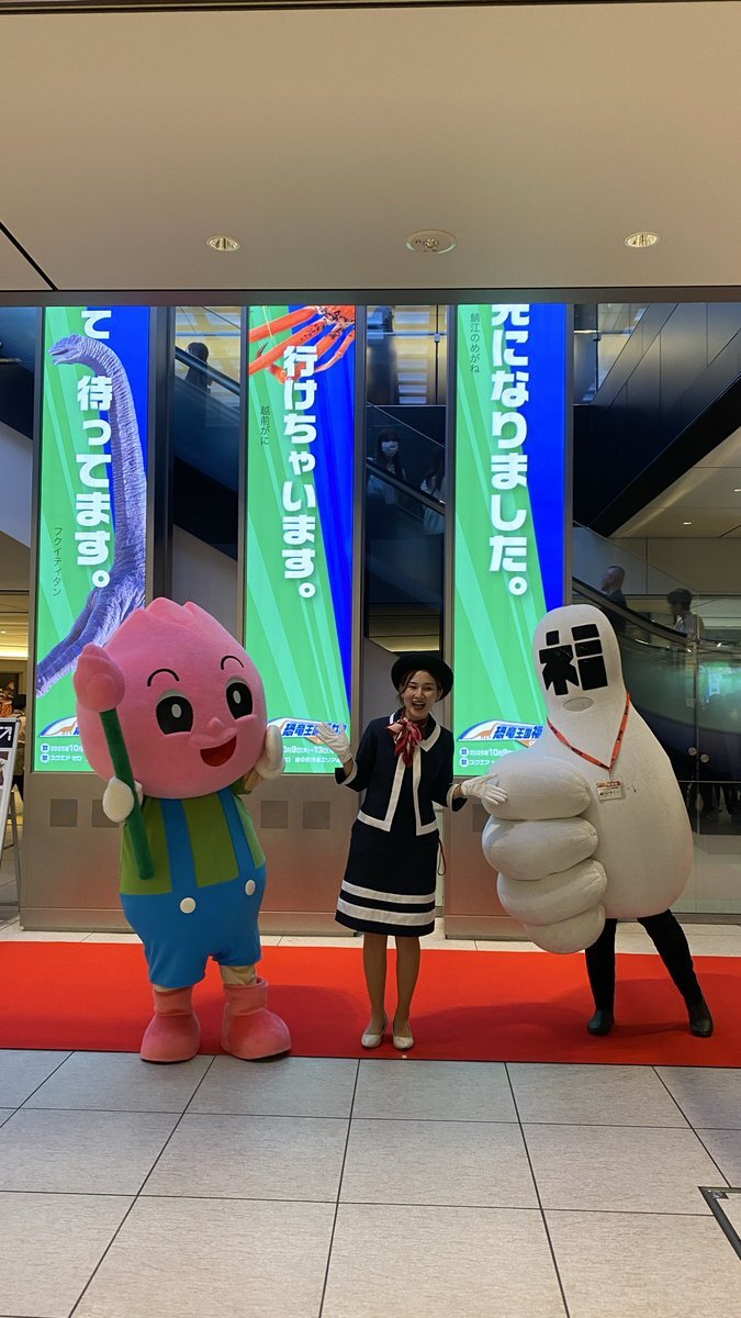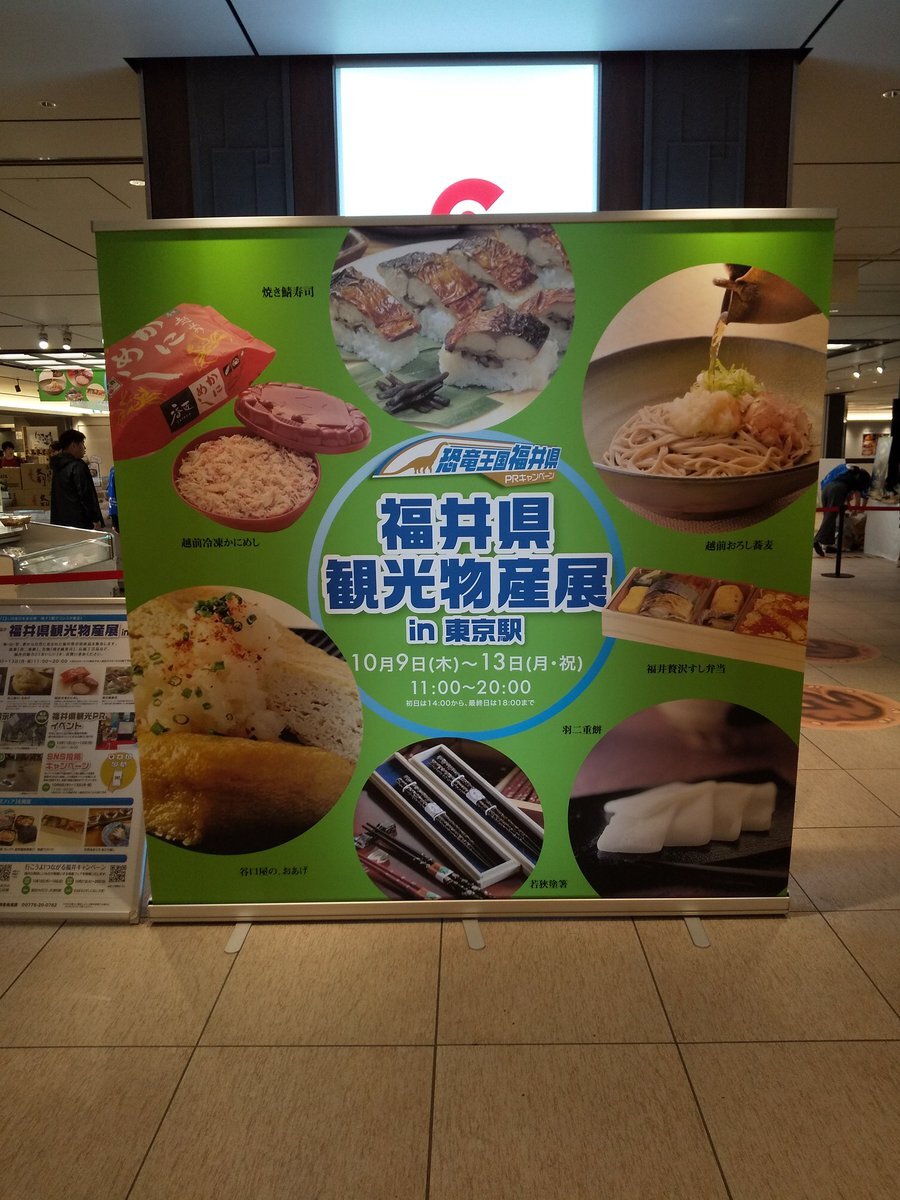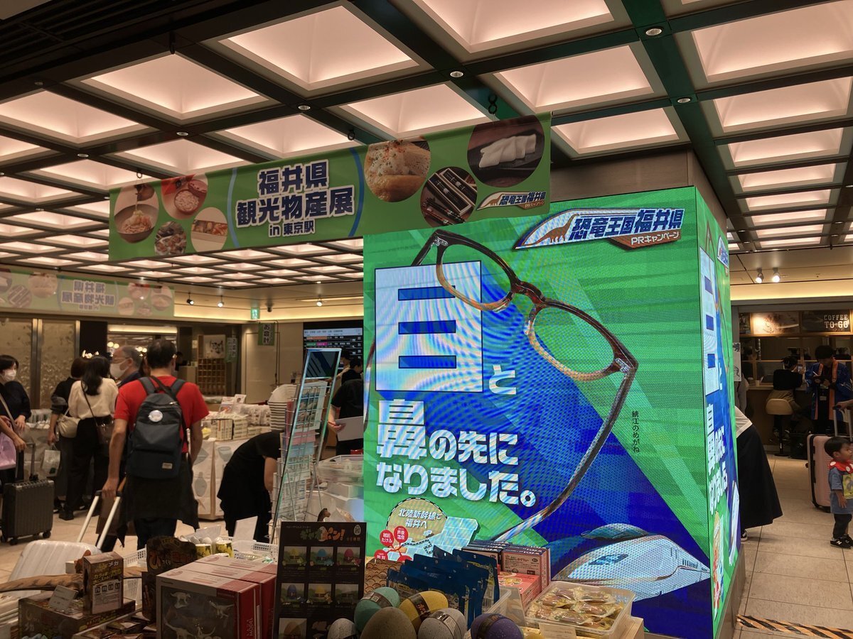 東京駅で開かれている、#福井県観光物産展 へ行ってきました‼️ 『#かがやきちゃん』に会えなかったのは悔やまれますが、念願の #恐竜博士 に会えましたし、駅弁『#竜のめぐみ』もゲットできて満足です👍とっても美味しかったです🦀🦖 #坂川陽香 #福井県 #福井ブレンド大使 #AKB48 pic.x.com/zV9Fp75v1Q