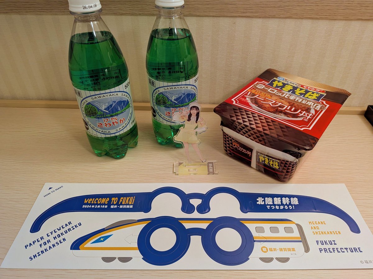 安定のさわやかと気になったソースカツ丼のペヤングをゲット👍 へしこは日本酒が止まらなくなるから今回は自粛😅 駅ナカで物産展はありがたい🦖 またかがやきちゃんに会いたかったわ〜 アンケート答えてかがやきちゃんめがね頂きました🚅 #坂川陽香🦀🦖 #ふくいブランド大使🦖 #福井県観光物産展 pic.x.com/nlWRwyXCBG