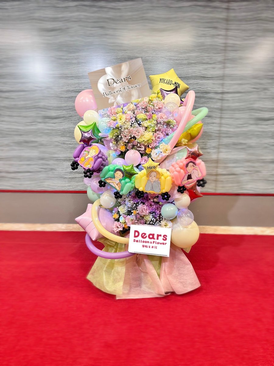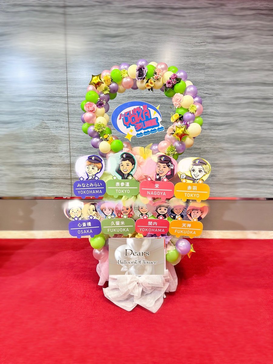 YOKARO-MON様 ノッていかんねYOKA列車全国ツアー🚃💫 列車をイメージしたバルーンに パネルを乗せた可愛いデザインの #フラスタ をお届けさせていただきました🧚 ファンの皆様 ありがとうございました🧚 #福岡公演 #バルーンスタンド pic.x.com/fbmsNhXiKj