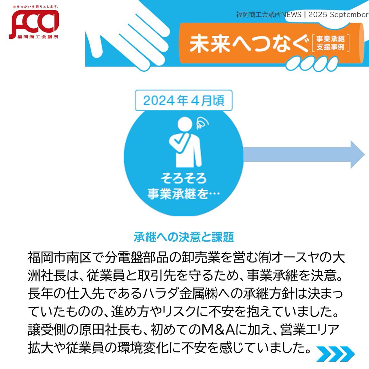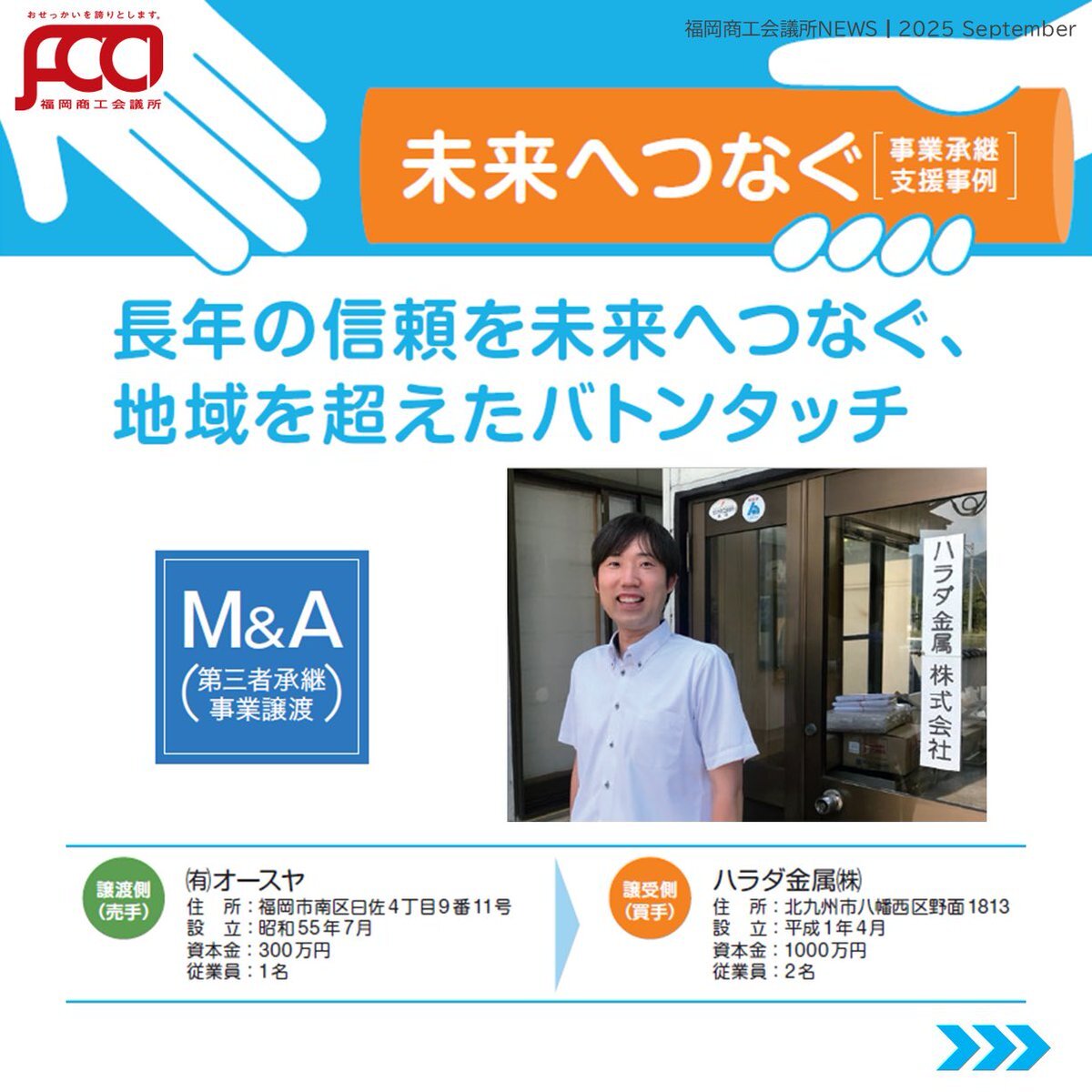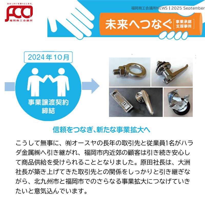 #福岡商工会議所NEWS 9月号🌕🍁 『#未来へつなぐ#事業承継 支援事例 大切な事業を未来につなぐ事業承継🤝実際の支援事例をご紹介!✨ 詳細はこちらから!🔍 ▶fukunet.or.jp/about/news/ #福岡商工会議所 pic.x.com/2vdFuC64tH