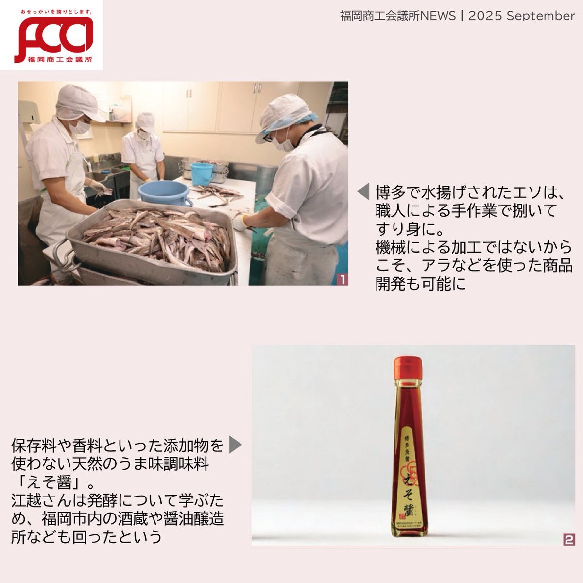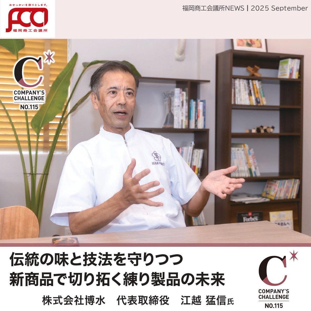#福岡商工会議所news 9月号🌕🍁 カンパニーズチャレンジ Vol.115   伝統の味と技法を守りつつ  新製品で切り拓く練り製品の未来   🎤株式会社博水   代表取締役 江越 猛信 氏 🔗fukunet.or.jp/about/news/ (※プロフィールのリンクからどうぞ) #福岡商工会議所 pic.x.com/1M2hC7y2dr