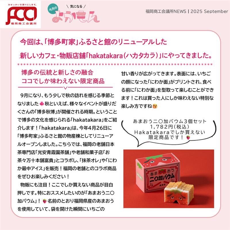 #福岡商工会議所NEWS 9月号🌕🍁 編集部が街で見つけた気になる「#よかもん 」 🔍✨ 今月は、「博多町家」ふるさと館の「hakatakara」さんを取材しました!   誌面では、「#hakatakara 」でしか買えない限定商品や実演イベントについてご紹介!🙋🏻‍♂️ 詳細🔗fukunet.or.jp/about/news/ #福岡商工会議所 pic.x.com/9AFfm5ES2V