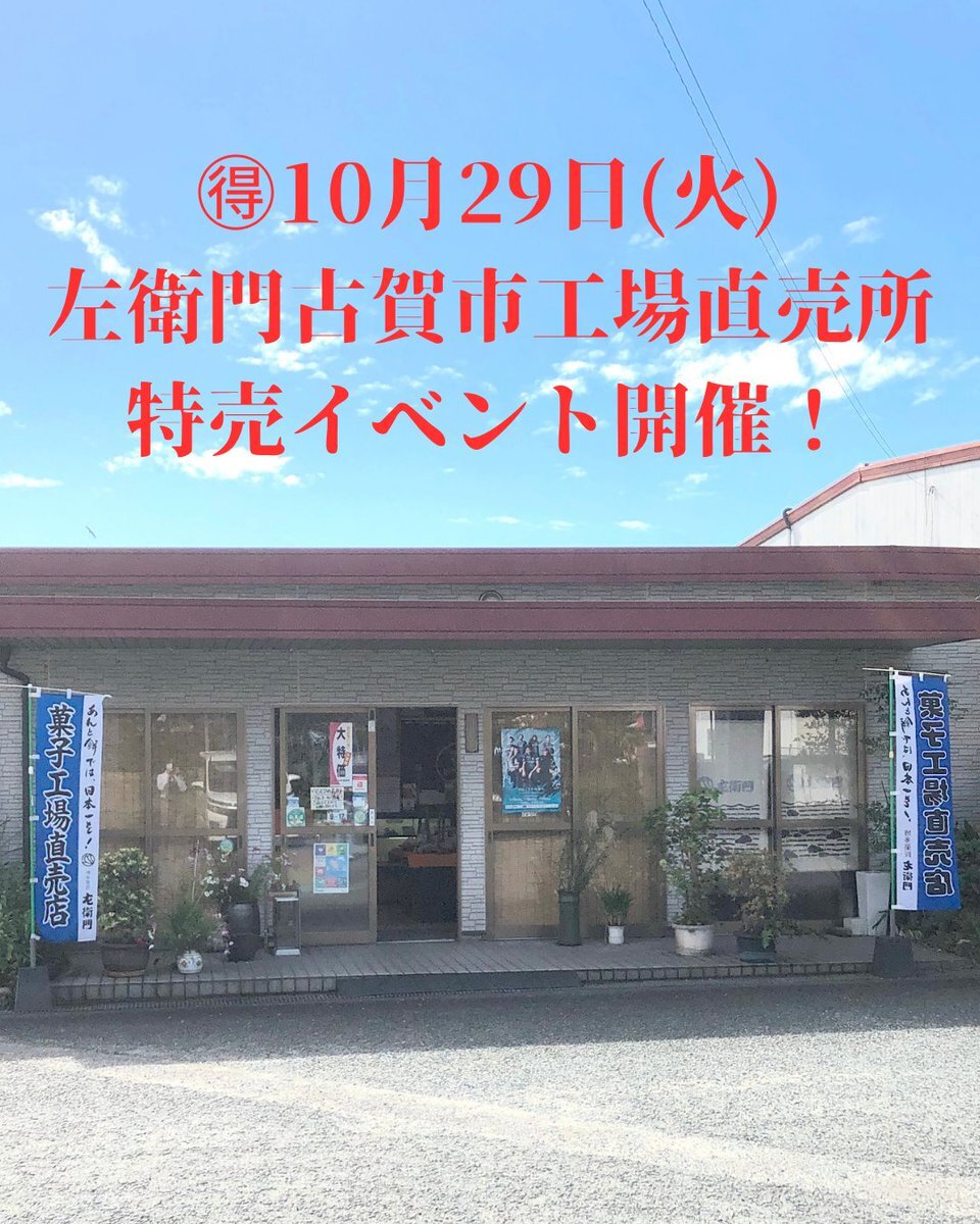 🉐10月29日(水) 毎月最終水曜 #左衛門 古賀工場直売所 📍古賀市鹿部335-19☎️092-944-1311 #特売 イベント開催‼️ #博多菓匠左衛門 のお菓子を 限定数量・🉐価格でご用意 ご来店お待ちしてます🤗 #紫芋ぶらぶら #博多のへそ #博多もっちりどら焼き #福岡土産 #福岡スイーツ pic.x.com/vcHZxV7uvi