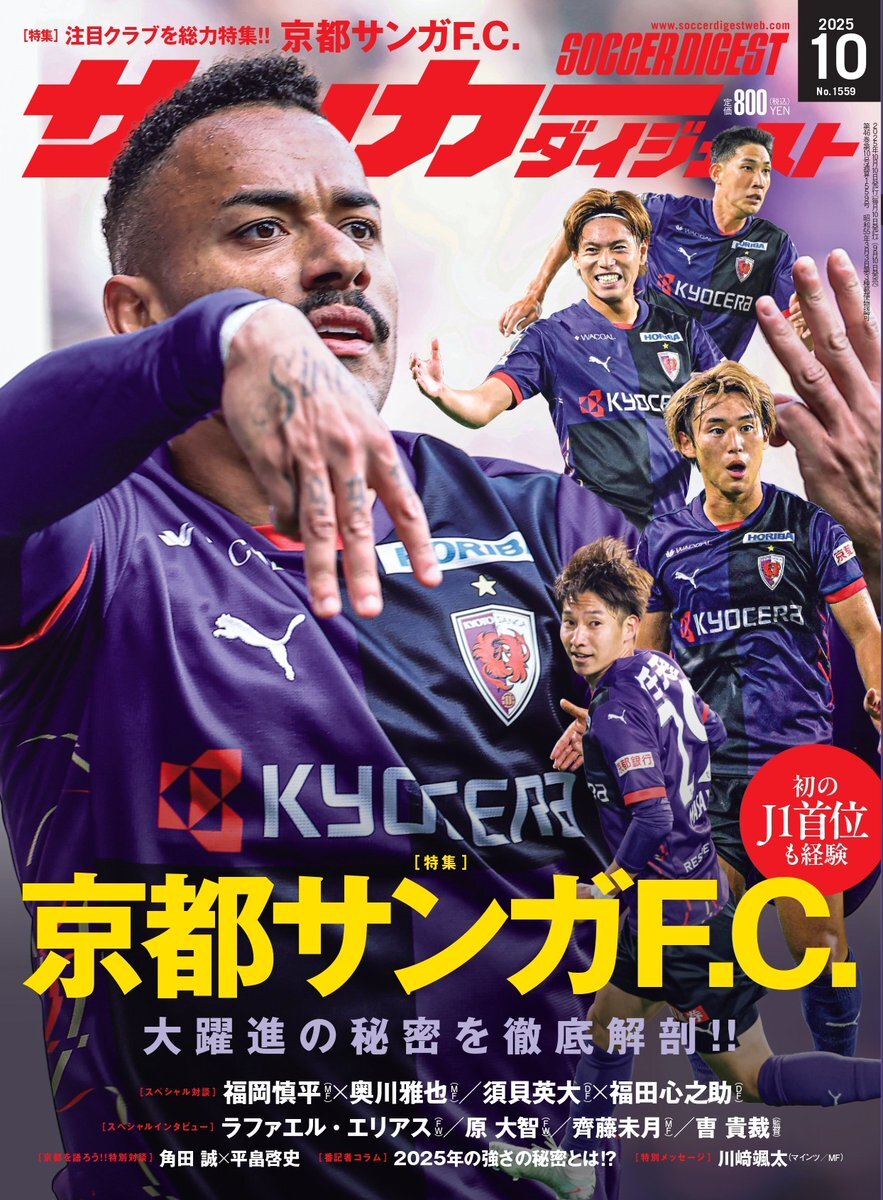 ✨表紙解禁✨ #J1 で首位を走る #京都サンガ F.C. を大特集した 9月10日発売の #サッカーダイジェスト の 表紙をご紹介‼️ #福岡慎平 選手 × #奥川雅也 選手、 #福田心之助 選手× #須貝英大 選手の特別対談 #曺貴裁 監督 #ラファエル・エリアス 選手 #齊藤未月 選手 #原大智 選手の pic.x.com/yWL2Ea2QO0