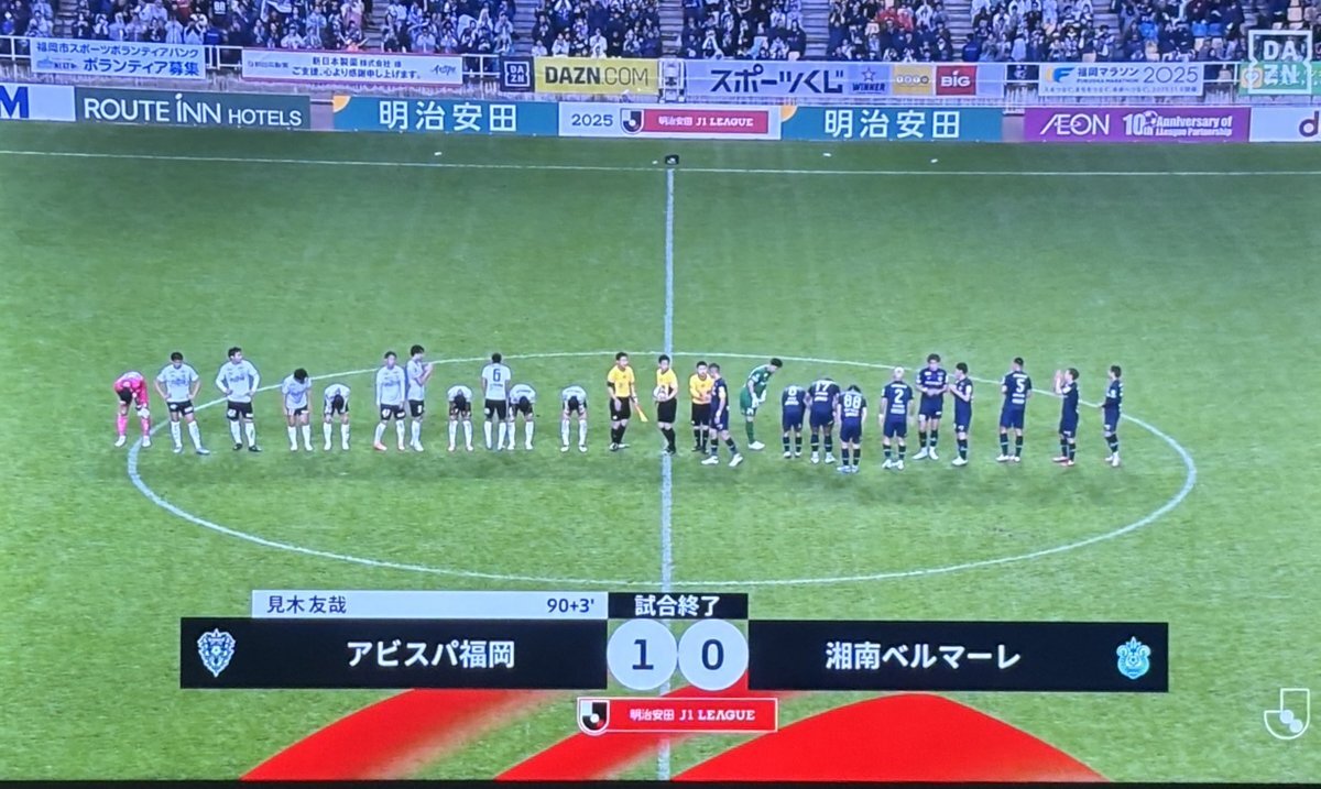 試合終了⚽ 🏆明治安田J1リーグ 第35節🏆 #新日本製薬DAYMATCH #アビスパ福岡 1-0 #湘南ベルマーレ #DAZN で配信! 視聴はこちら➡️prf.hn/click/camref:1… #avispa
