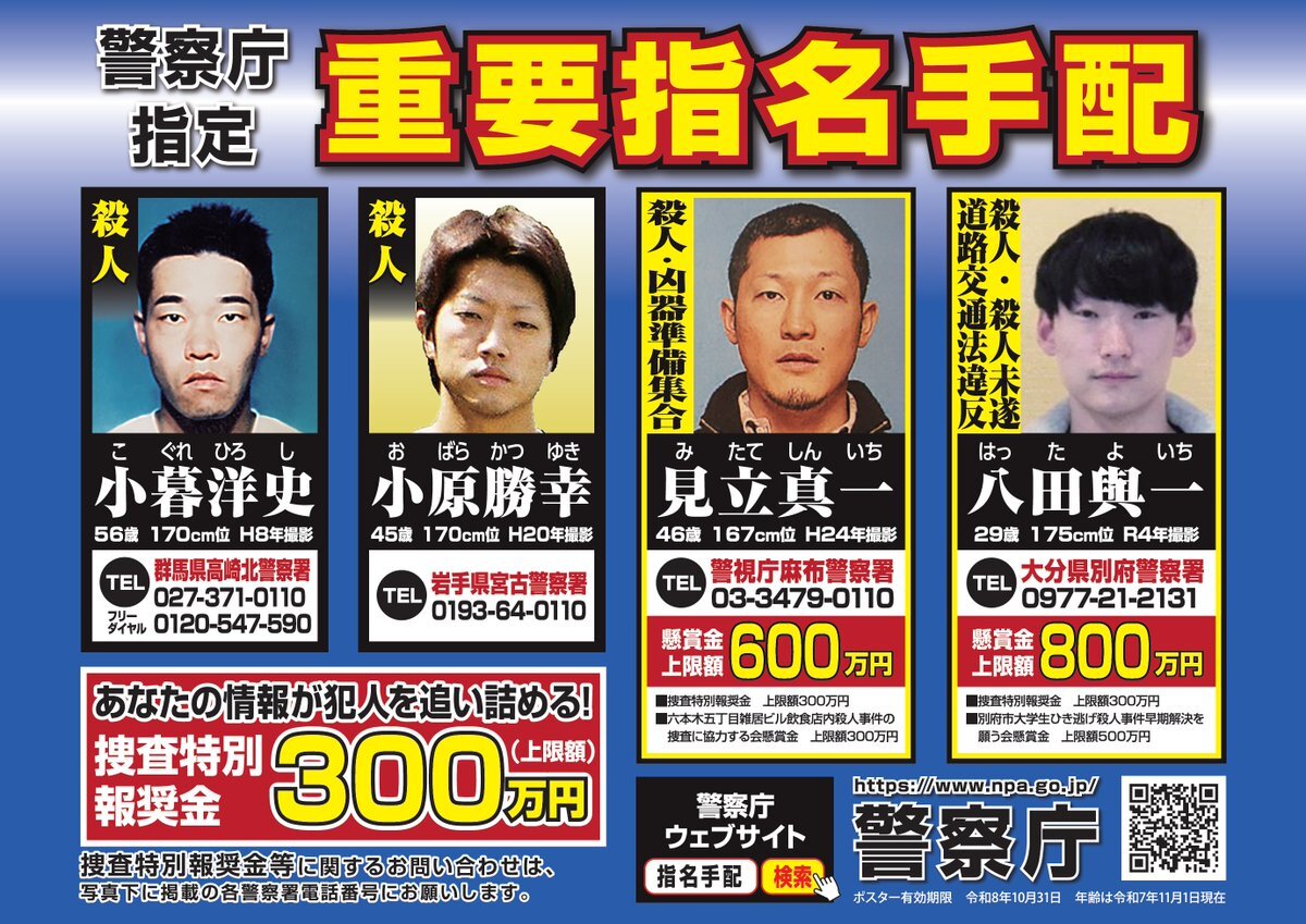 【刑事総務課】 🚨11月は「指名手配被疑者捜査強化月間」🚨 全国で約590人、県内で35人の指名手配被疑者が逃走しています。(8月末現在)。県警ホームページやポスターをご覧いただき、「似てる」と思ったら110番通報をお願いします🤳#福岡県警 #110番 #指名手配 police.pref.fukuoka.jp/jiken-jiko/01.… pic.x.com/nblJ1Rdur2