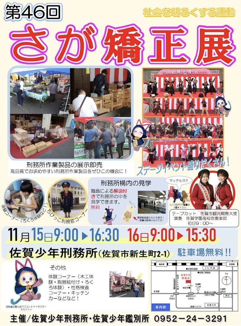 【福岡矯正展 】 11月15日(土)16日(日)、#福岡刑務所 で矯正展を開催します。刑務所作業製品の展示即売のほか、所内見学などのイベント をご用意してます。また、16日はスペシャルゲストも登場します。入場無料です。ご来場お待ちしてます! #矯正展 #刑務所 #宇美町 #イベント #無料
