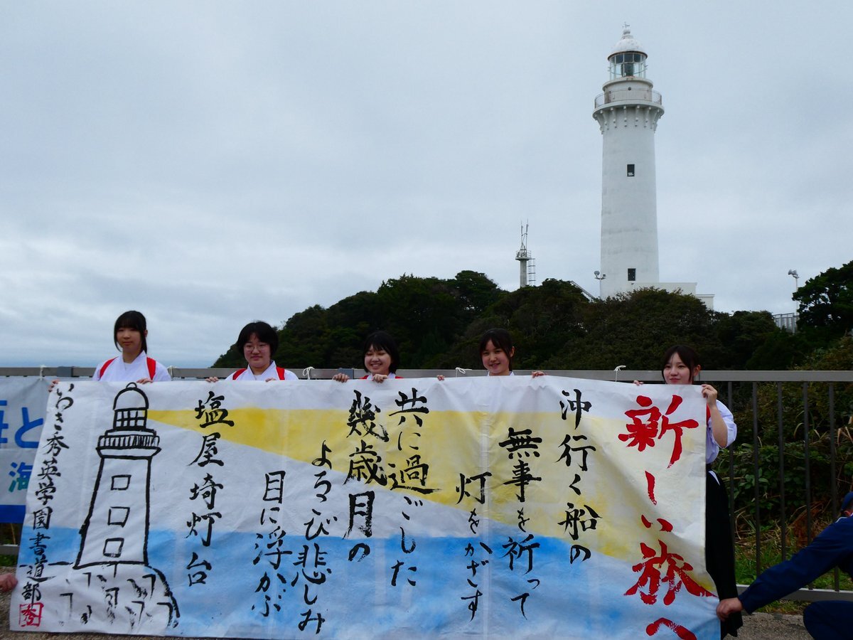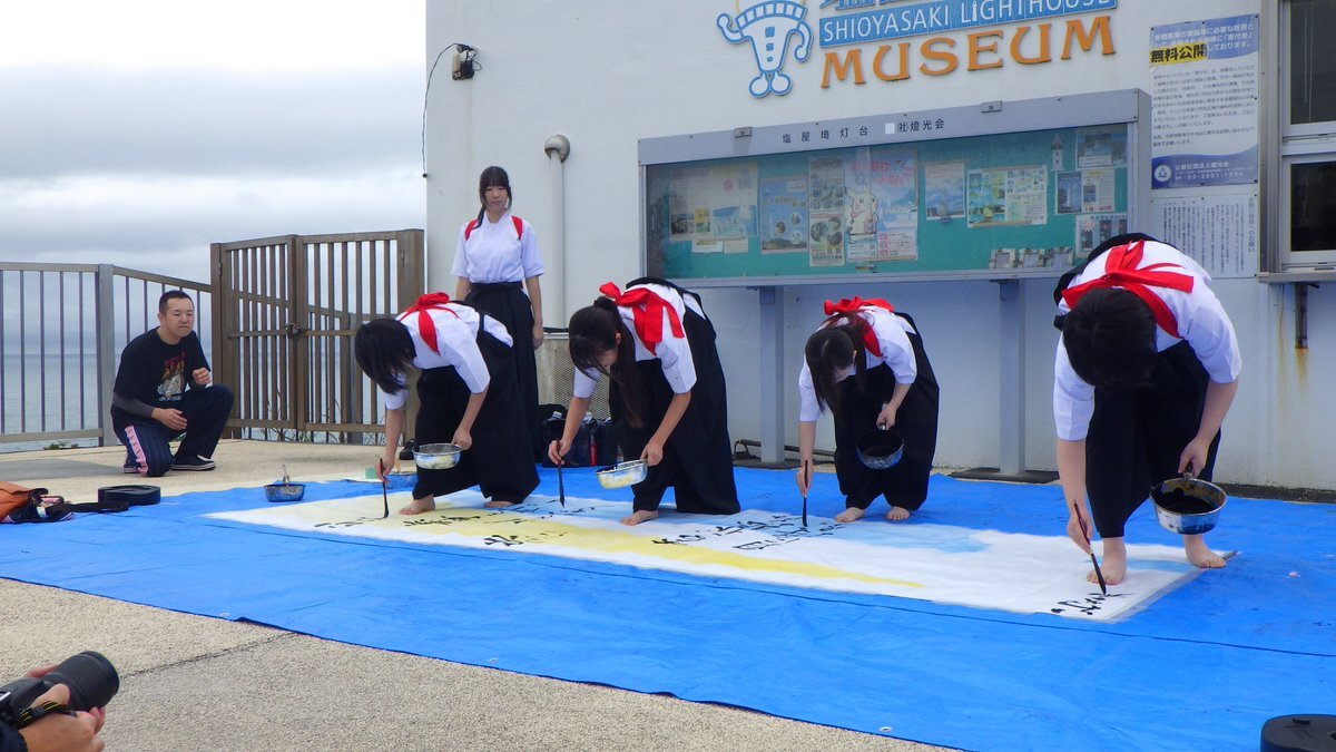 【 #塩屋埼灯台一般公開  】 #福島海上保安部 は10月26日、塩屋埼灯台の一般公開を行いました! お足元の悪い中、ご来場いただきありがとうございました! いわき秀英中学高等学校書道部の「書道パフォーマンス」により、とても素敵な作品が出来上がりました! #海上保安庁 #二管海保 pic.x.com/ZM1hR56UAr