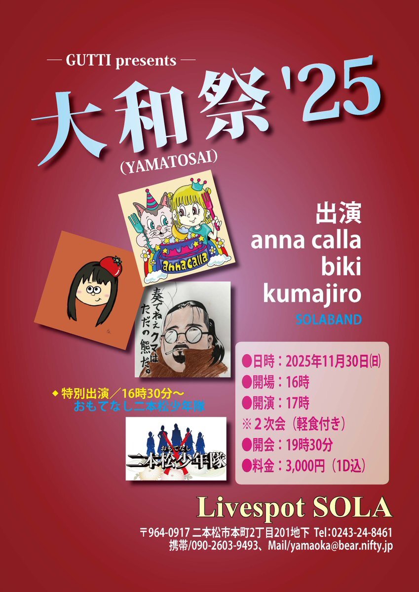#おもてなし二本松少年隊 #出陣情報 駅前にある #ライブハウス #LivespotSOLA 16:30に出演! ぜひお越しくださいませ。 #福島県 #二本松市 #イベント情報 #kumajiro #annacalla #biki #音楽 #ライブ #livespotsola #観光 #旅行 instagram.com/p/DRmGoiXkjUY/… pic.x.com/QgZhT5r5q1