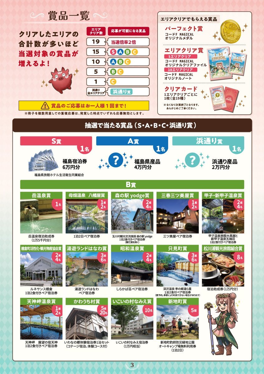 ☆*゚ ゜゚*☆*゚ ゜゚*☆ #コードF MAGICAL 大好評開催中! *。,。*゚*。,。*゚*。,。* #福島県 内19エリアを舞台にした周遊型宝探しイベント! 豪華賞品が当たる抽選や、全エリアクリアでパーフェクト賞も♪ 期間は12月21日まで!ご参加はお早めに! ⬇詳細⬇ huntersvillage.jp/quest/code-f_m… pic.x.com/5IbqjdTpGB